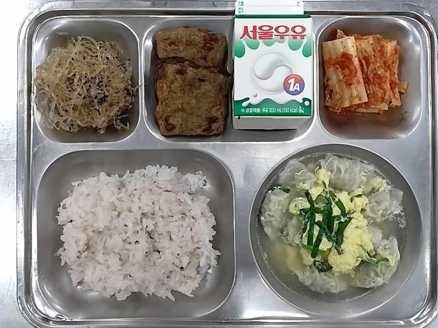 조식: 수수밥, 물만두계란탕, 너비아니구이, 진미체고추장볶음, 배추김치, 우유
