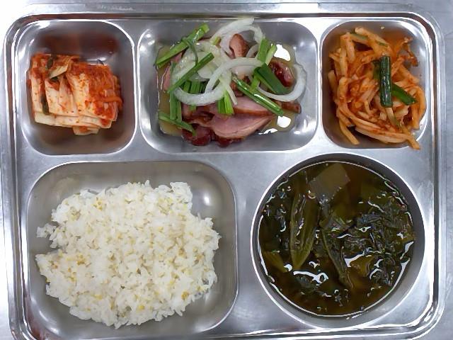 중식: 기장밥, 아욱국, 훈제오리+소스, 부추무생채, 배추김치