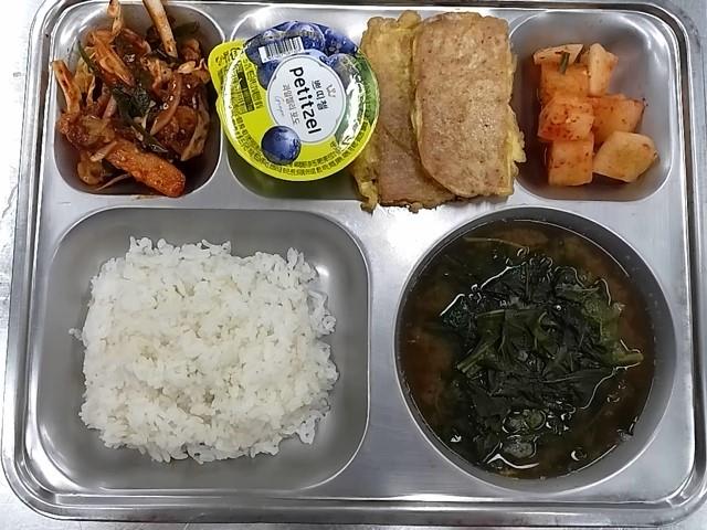 석식: 발아현미밥, 아욱올갱이국, 꼬막배무침, 스팸계란전+케찹,깍두기, 쁘띠첼