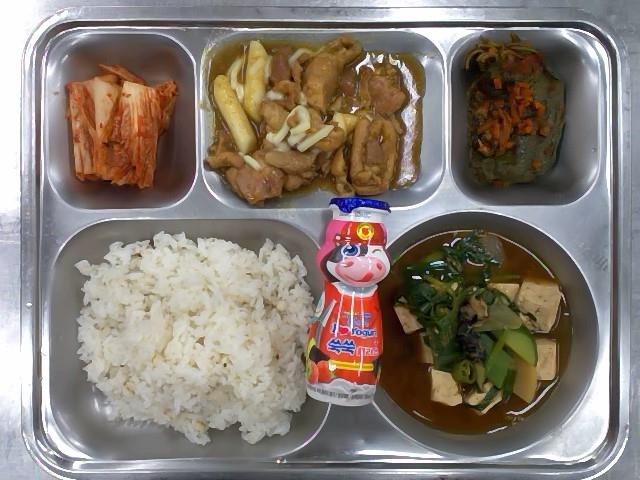 중식: 율무밥, 우렁된장찌개, 치즈불닭, 깻잎찜, 배추김치, 요플레
