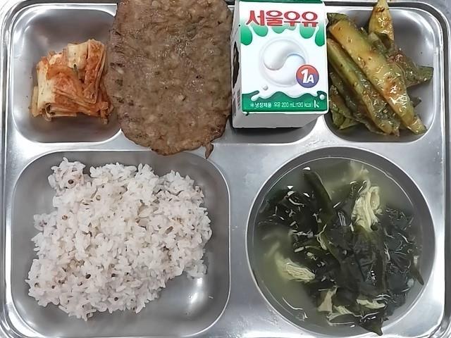 조식: 수수밥, 닭고기미역국, 언양식바싹불고기, 오이상추겉절이, 배추김치, 우유