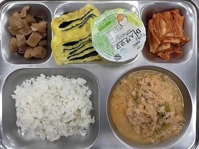 석식: 차조밥, 콩비지찌개, 돈육장조림, 김계란말이, 배추김치, 머스캣코코