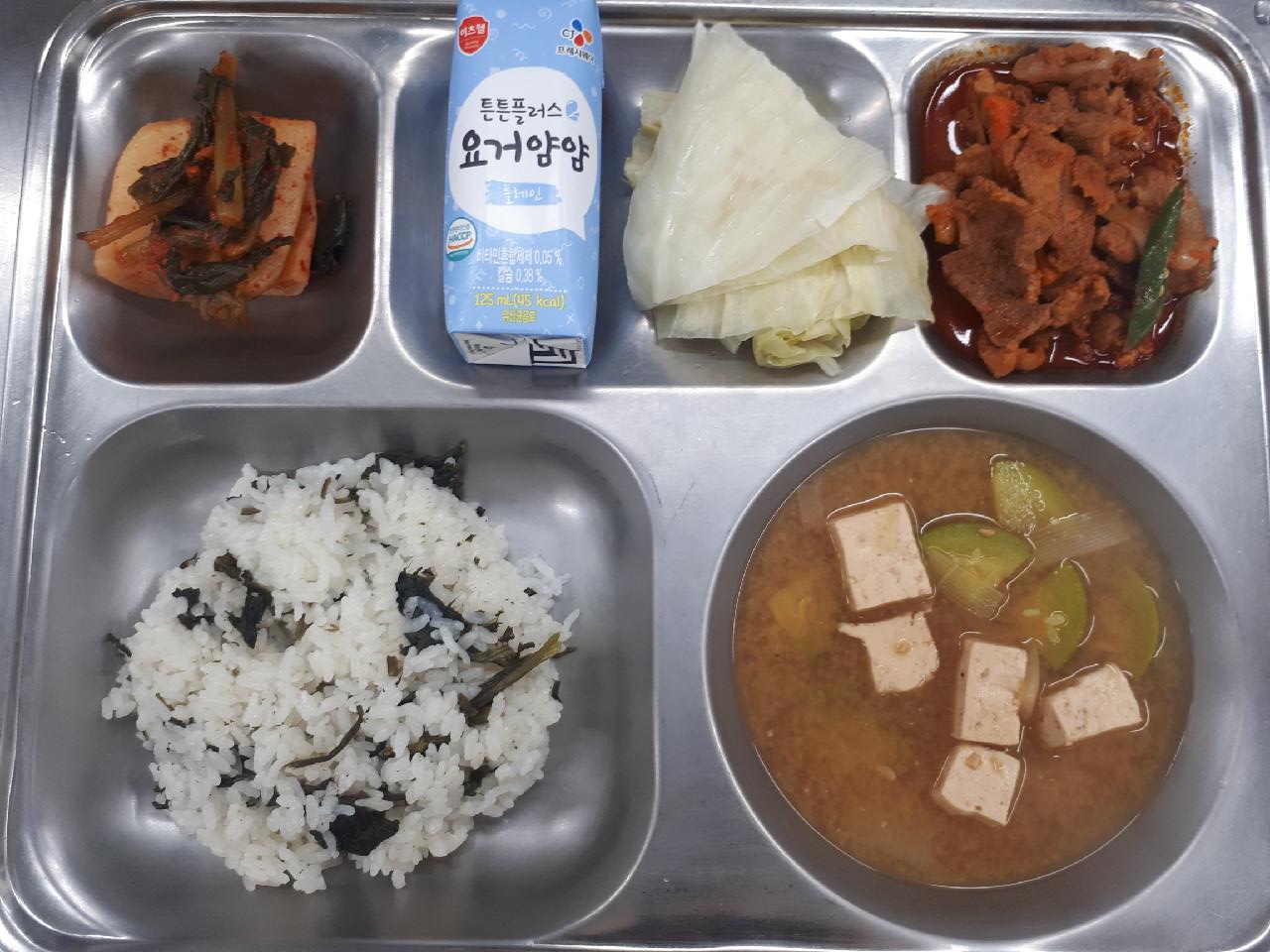 중식 : 곤드레밥/양념장, 호박두부된장국, 돼지불고기, 양배추쌈/쌈장, 총각김치, 요거얌얌