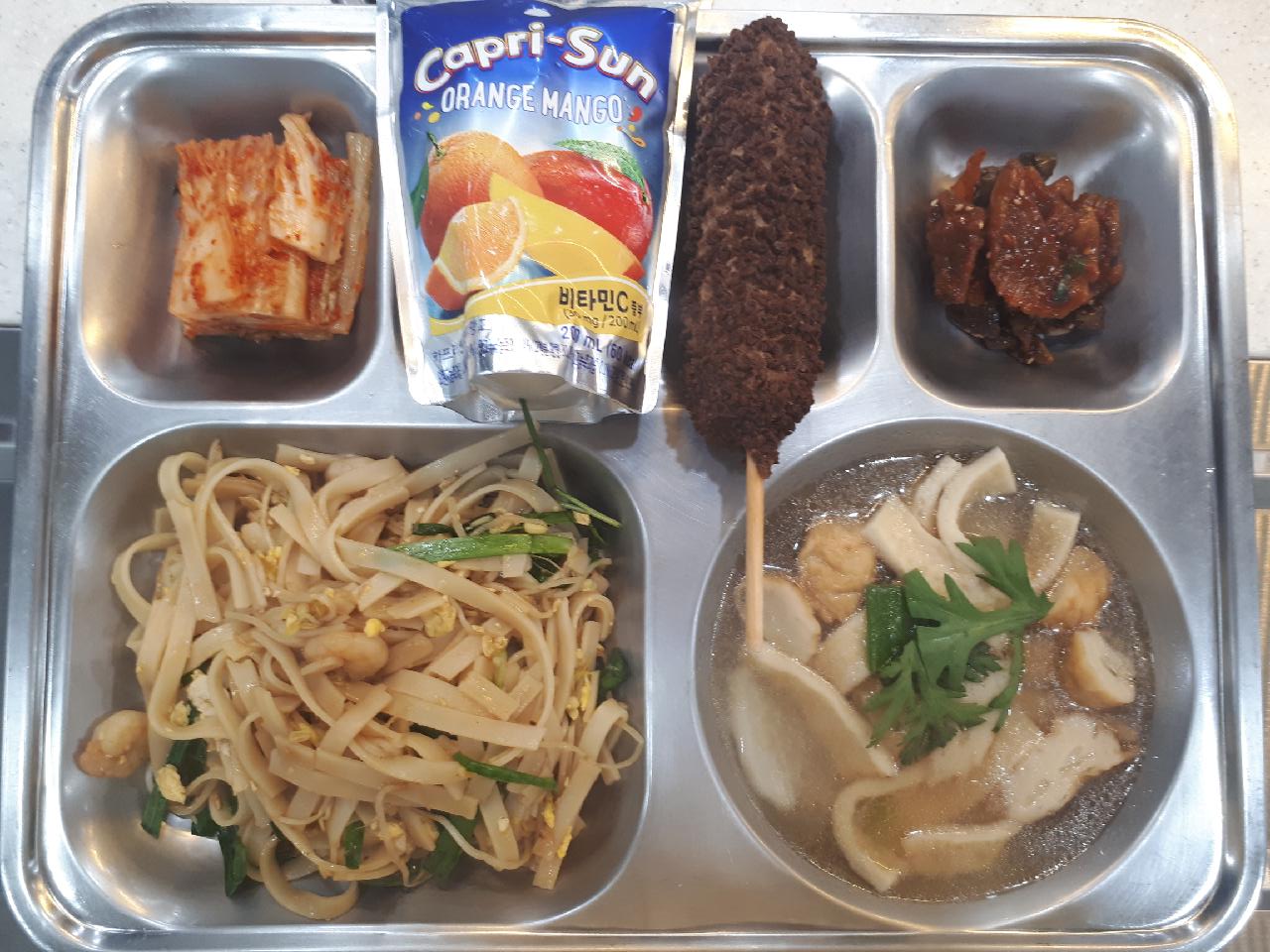 석식 : 팟타이, 어묵국, 무장아찌, 배추김치, 돼지바핫도그, 카프리썬