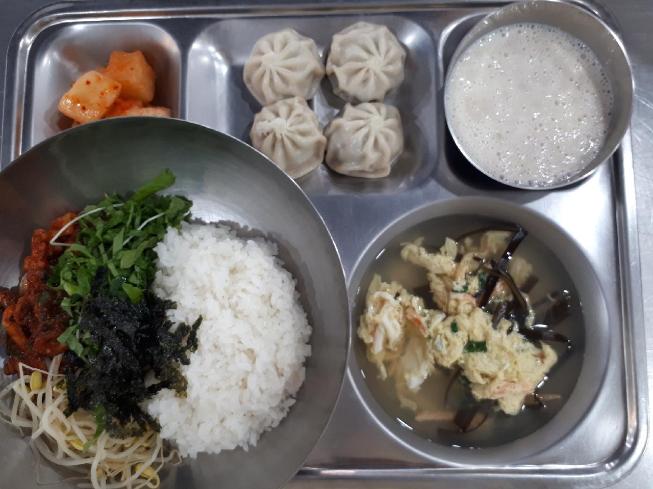 중식 : 낙지야채비빔밥, 탕파국, 깍두기, 유자바나나스무디, 소룡포