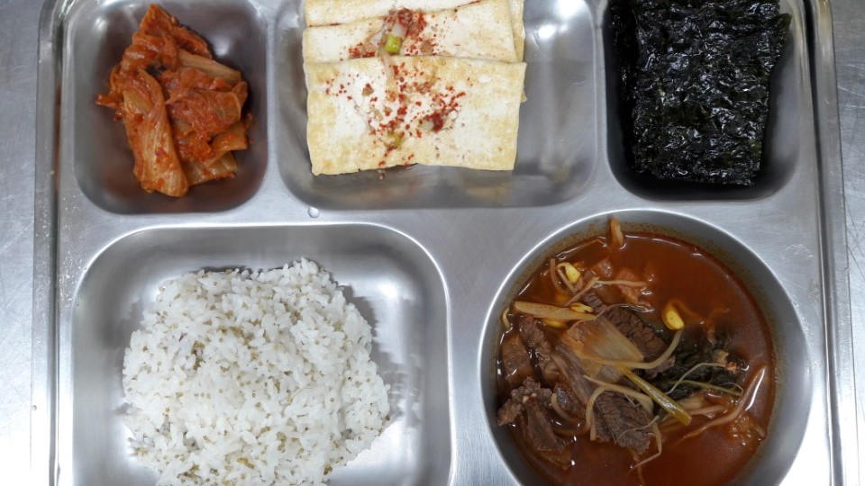 조식 : 차조밥, 소고기우거지국, 볶음김치, 두부구이/양념장, 구이김