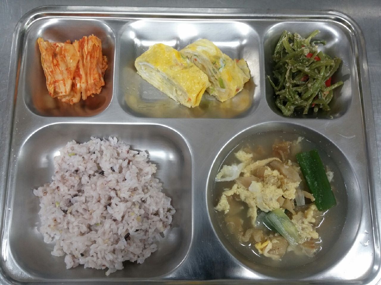 조식 : 혼합10곡밥, 북어계란국, 계란말이, 고구마순볶음, 배추김치