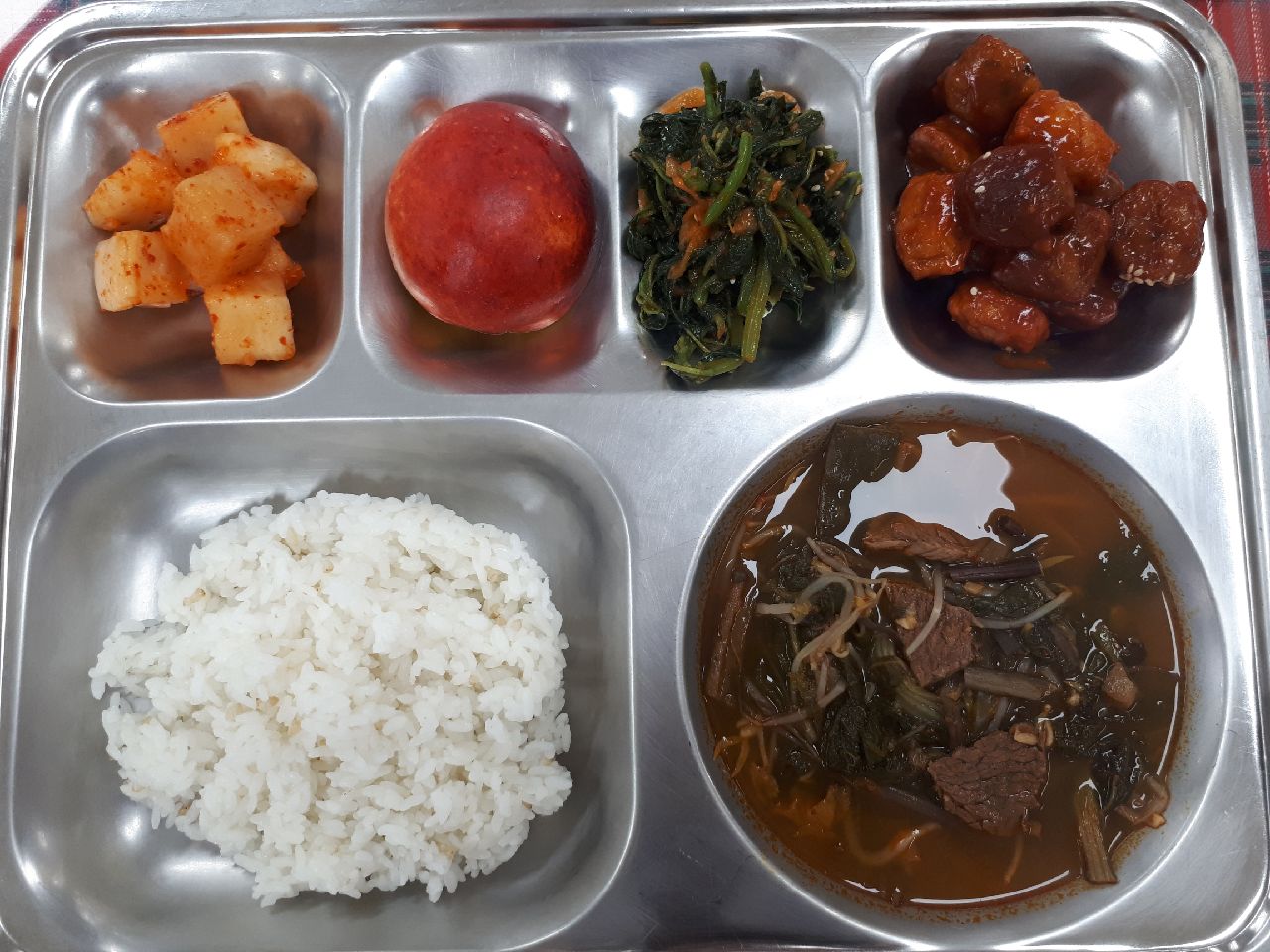 중식 : 발아현미밥, 육개장, 미트볼어묵조림, 비름나물, 깍두기, 천도복숭아