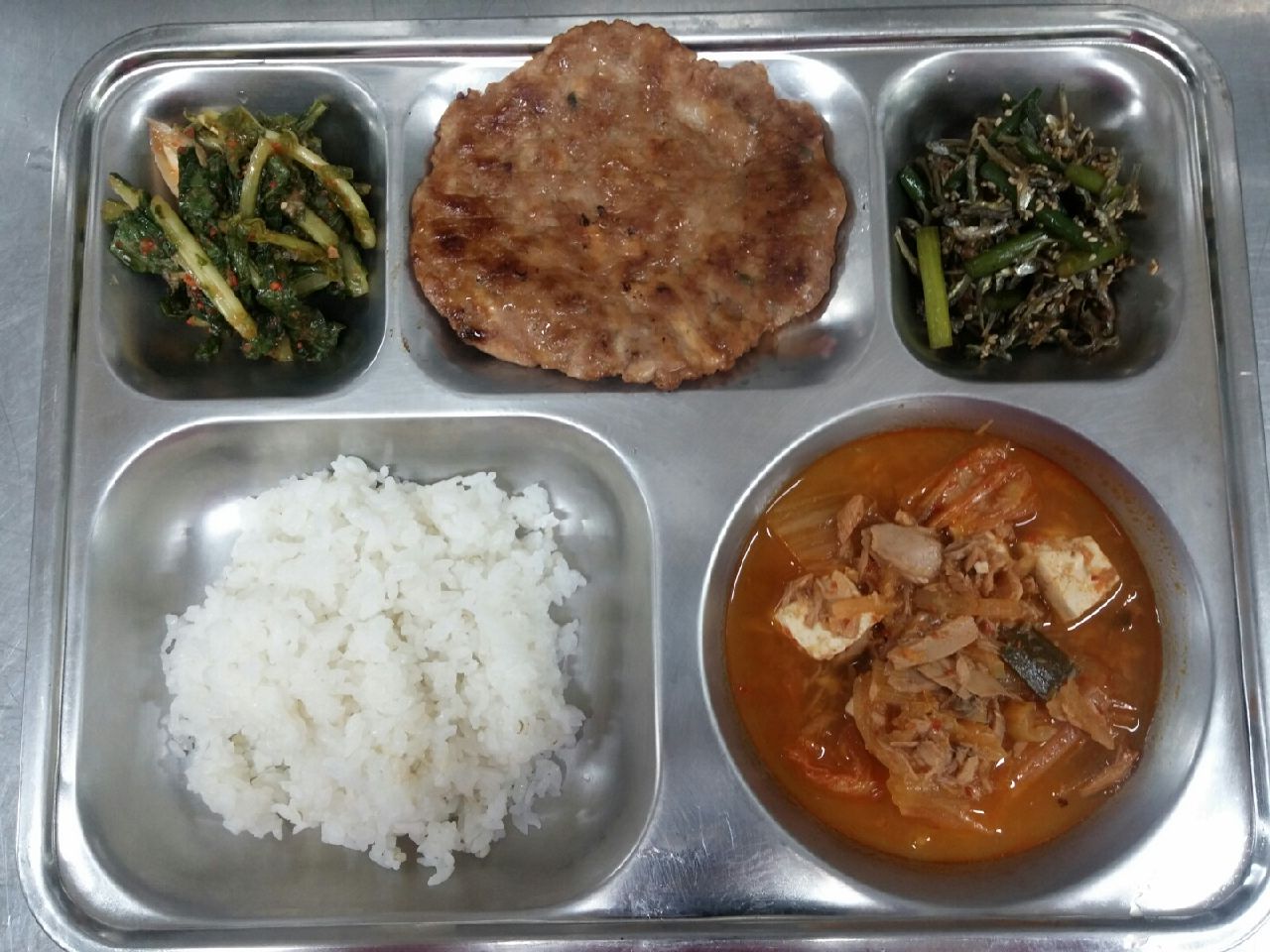 조식 : 발아현미밥, 참치찌개, 언양식바싹불고기, 멸치마늘쫑볶음, 깍두기