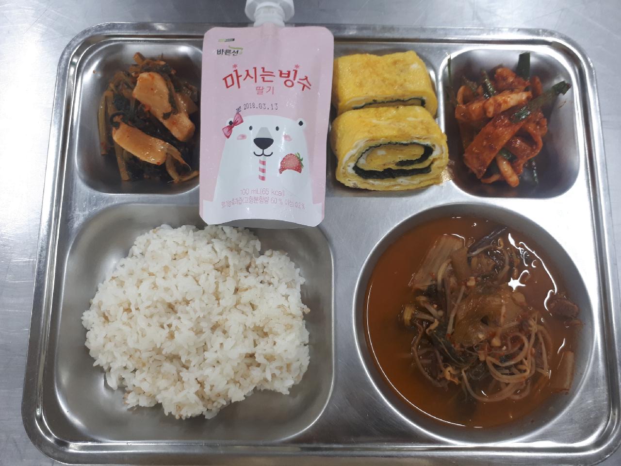 중식 : 발아현미밥, 육개장, 김계란말이, 어묵오징어무침, 배추김치, 마시는딸기빙수