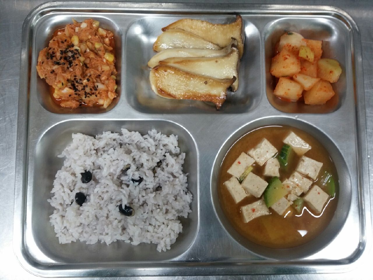 조식 : 서리태조각콩밥, 호박두부된장국, 고추참치야채볶음, 새송이버섯구이, 깍두기