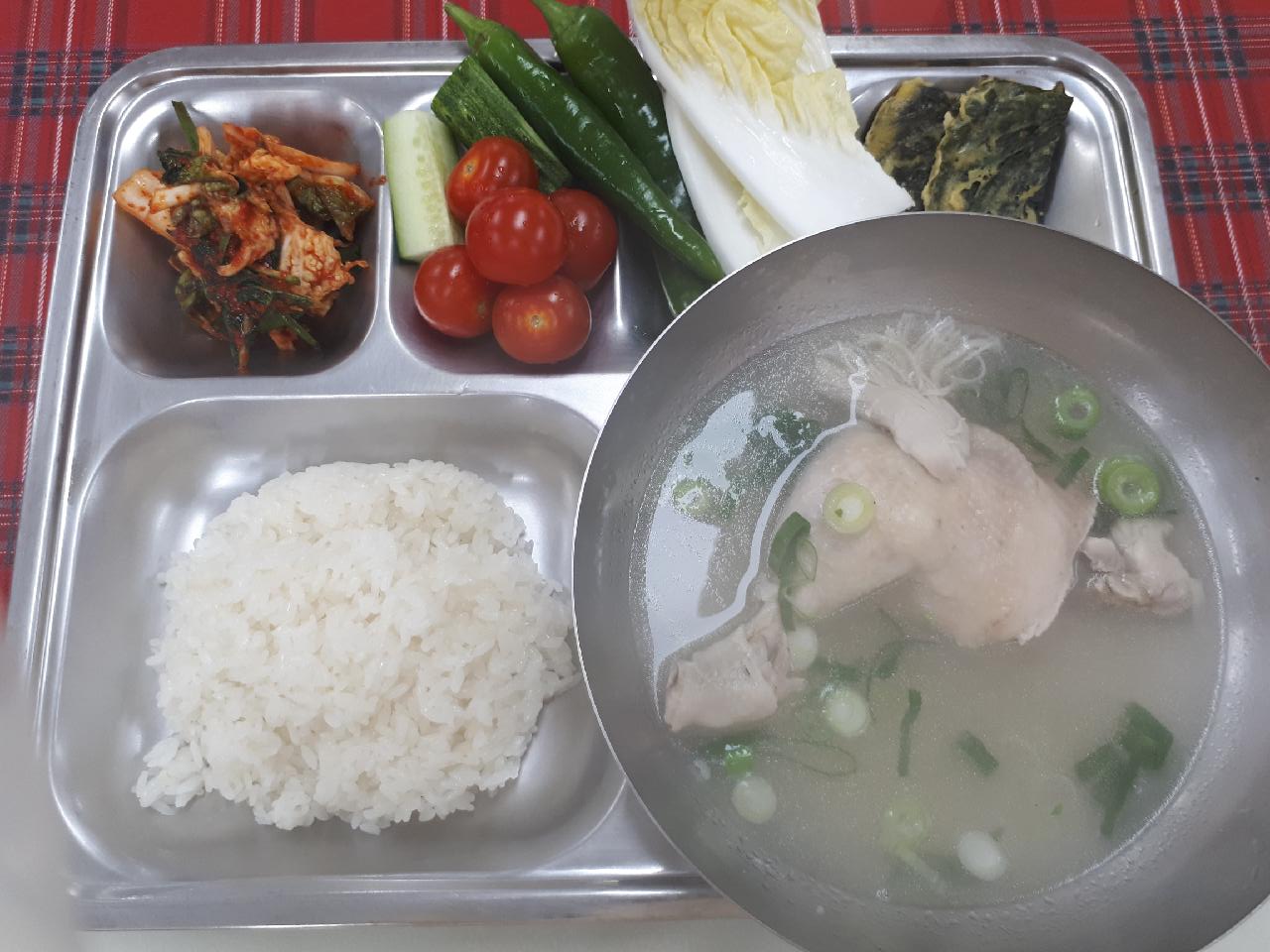 중식 : 찰밥, 장각삼계탕, 야채스틱/고추장, 배추겉절이, 깻잎전, 방울토마토