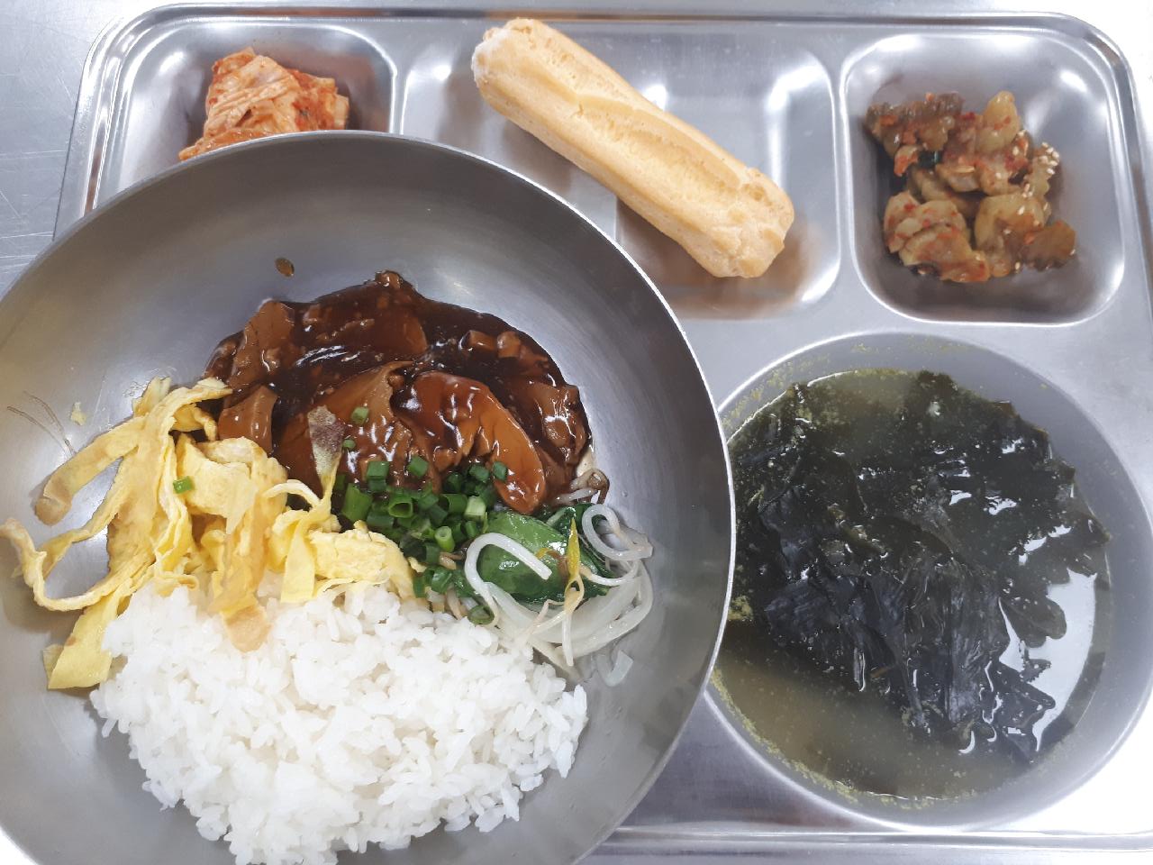 석식 : 차슈덮밥, 미역국, 오이장아찌무침, 배추김치, 아이스요구르트슈스틱