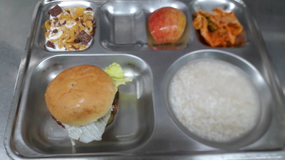 조식 : 불고기버거, 시리얼/우유, 사과, 숭늉/배추김치