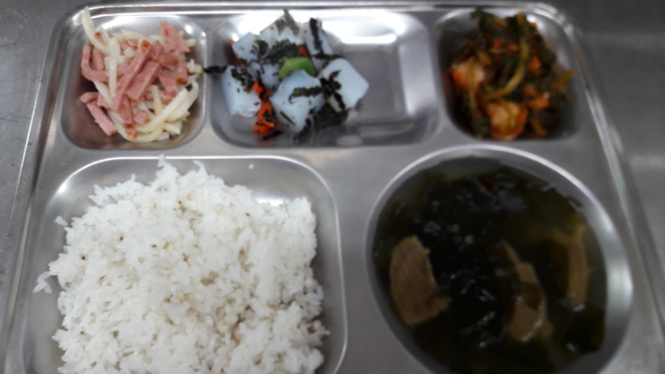 조식 : 율무밥, 소고기미역국, 감자채햄볶음, 청포묵무침, 총각김치