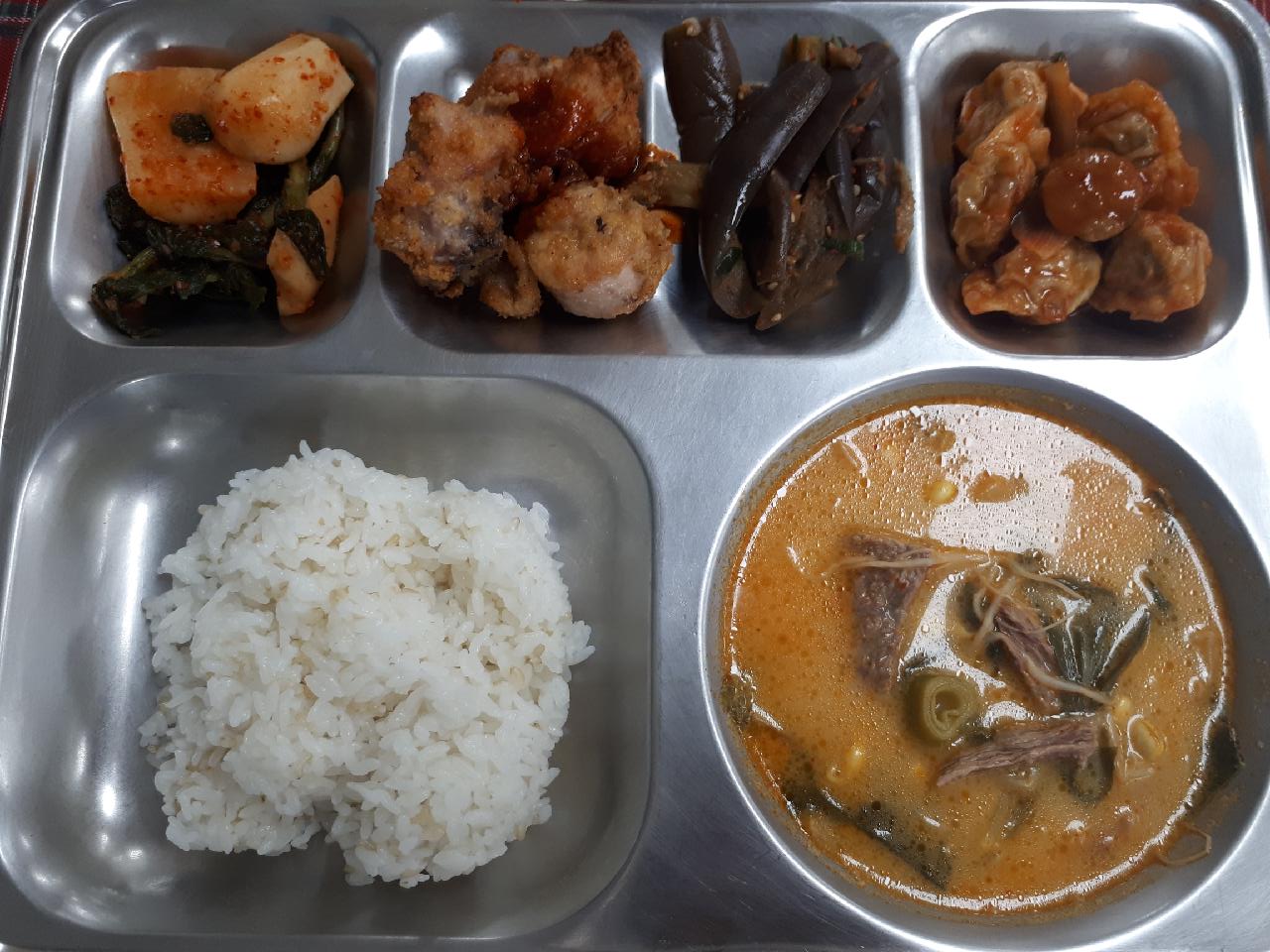 석식 : 발아현미밥, 사골우거지국, 우엉어묵볶음, 가지나물, 총각김치, 맛쵸킹