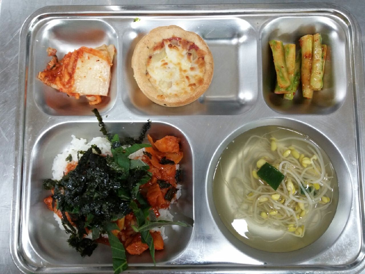 석식 : 치밥, 콩나물맑은국, 스틱오이무침, 배추김치, 파인애플빠네
