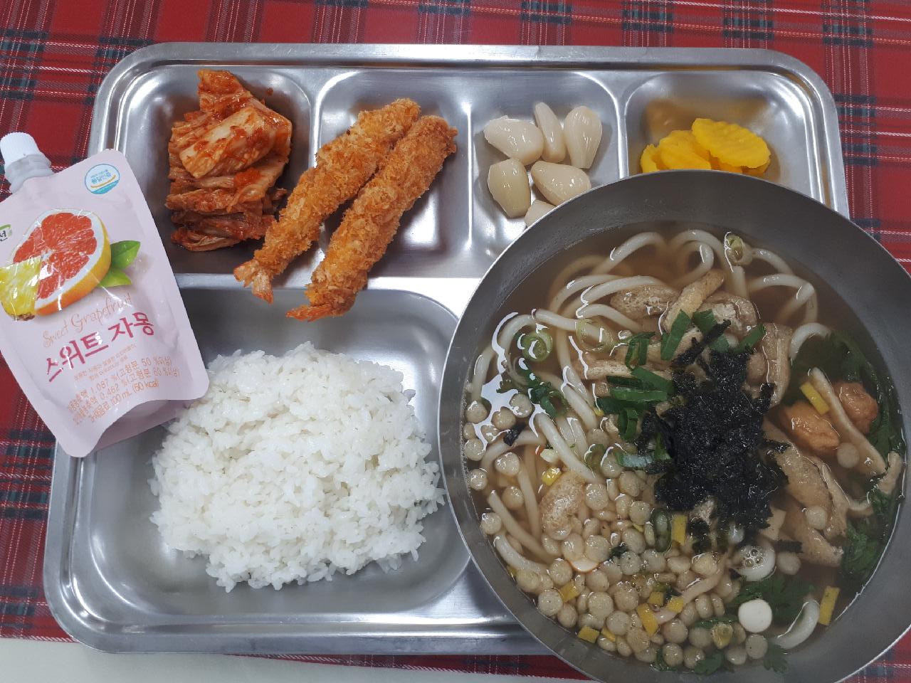 중식 : 흰밥, 튀김우동, 락교, 치자단무지, 배추김치, 왕새우튀김, 스위트자몽쥬스