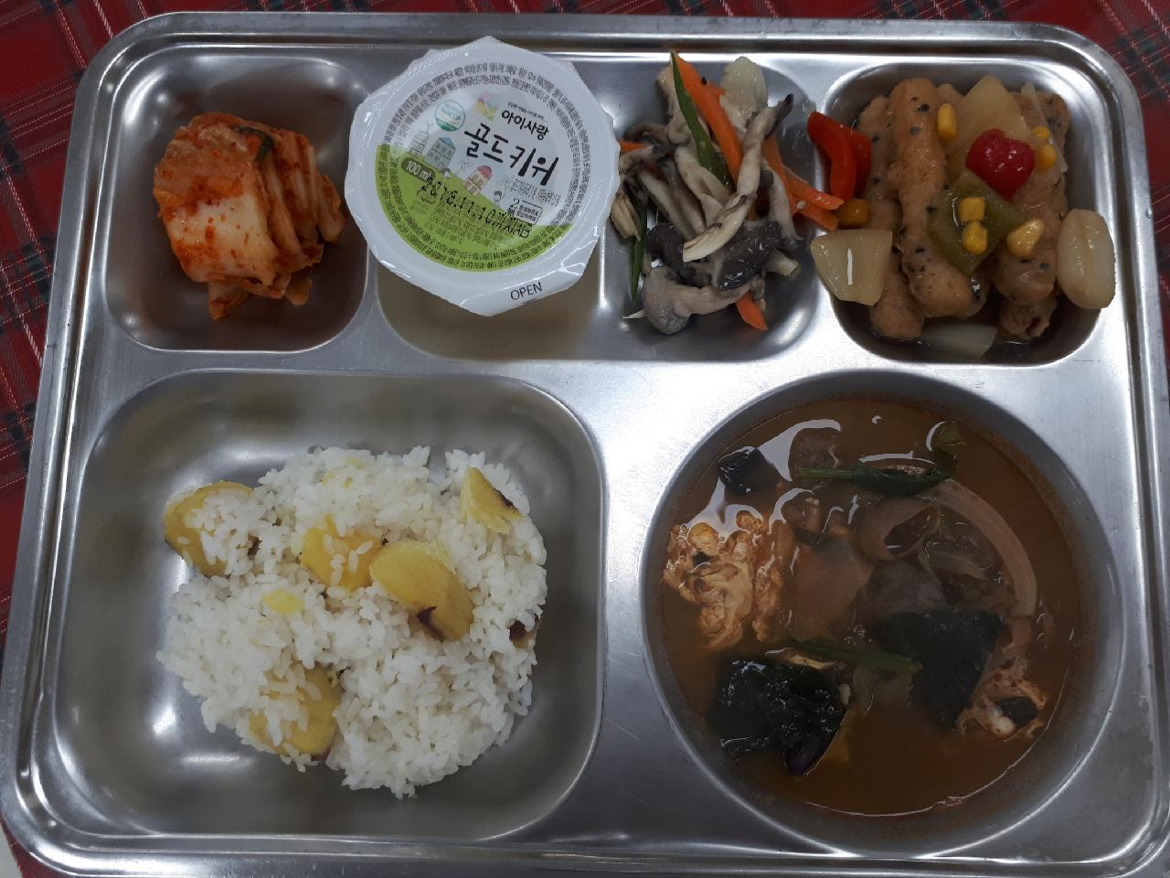 중식 : 고구마밥, 오징어짬뽕국, 후르츠탕수육, 느타리버섯볶음, 키위쥬스