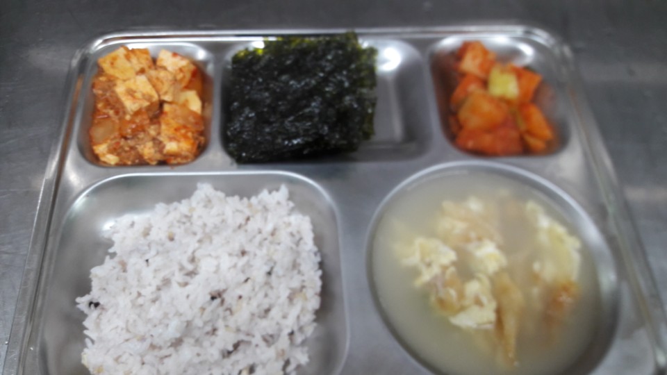 조식 : 잡곡밥, 북어감자계란국, 마파두부, 구이김, 깍두기