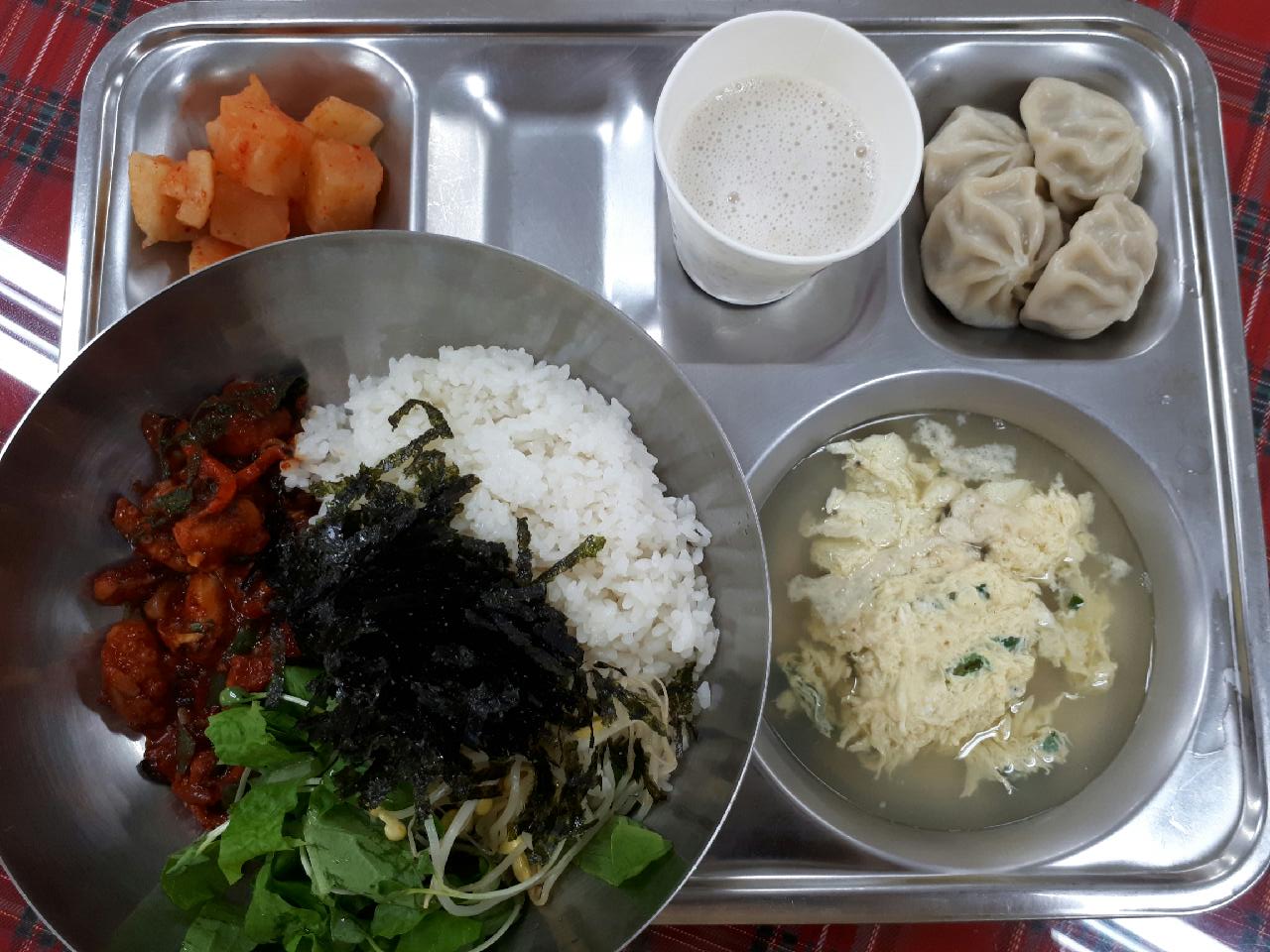 20일 중식 : 낙지야채비빔밥, 탕파국, 소룡포, 깍두기, 유자바나나스무디