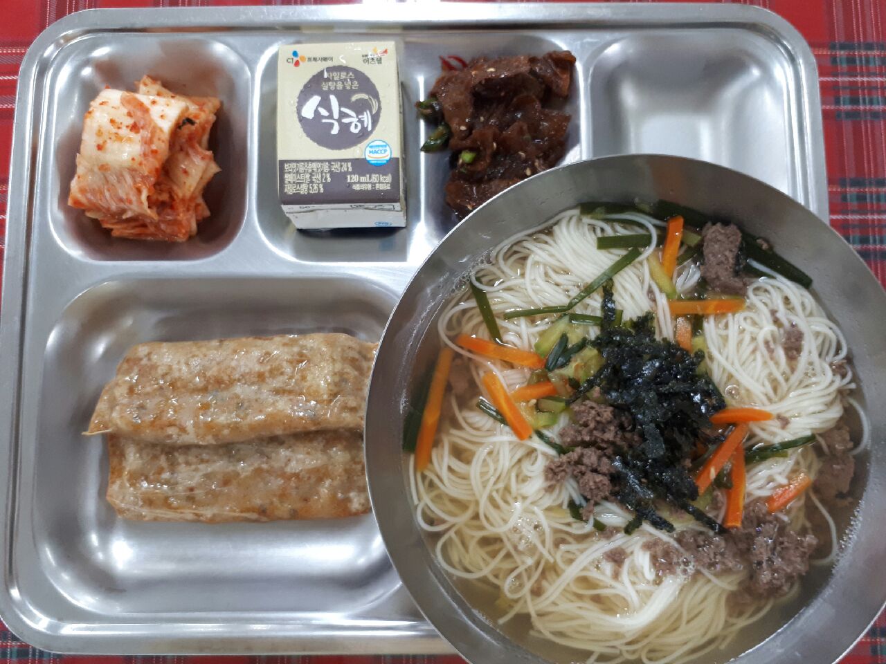 1일 중식 : 잔치국수, 무장아찌무침, 배추김치, 메밀김치전병, 식혜