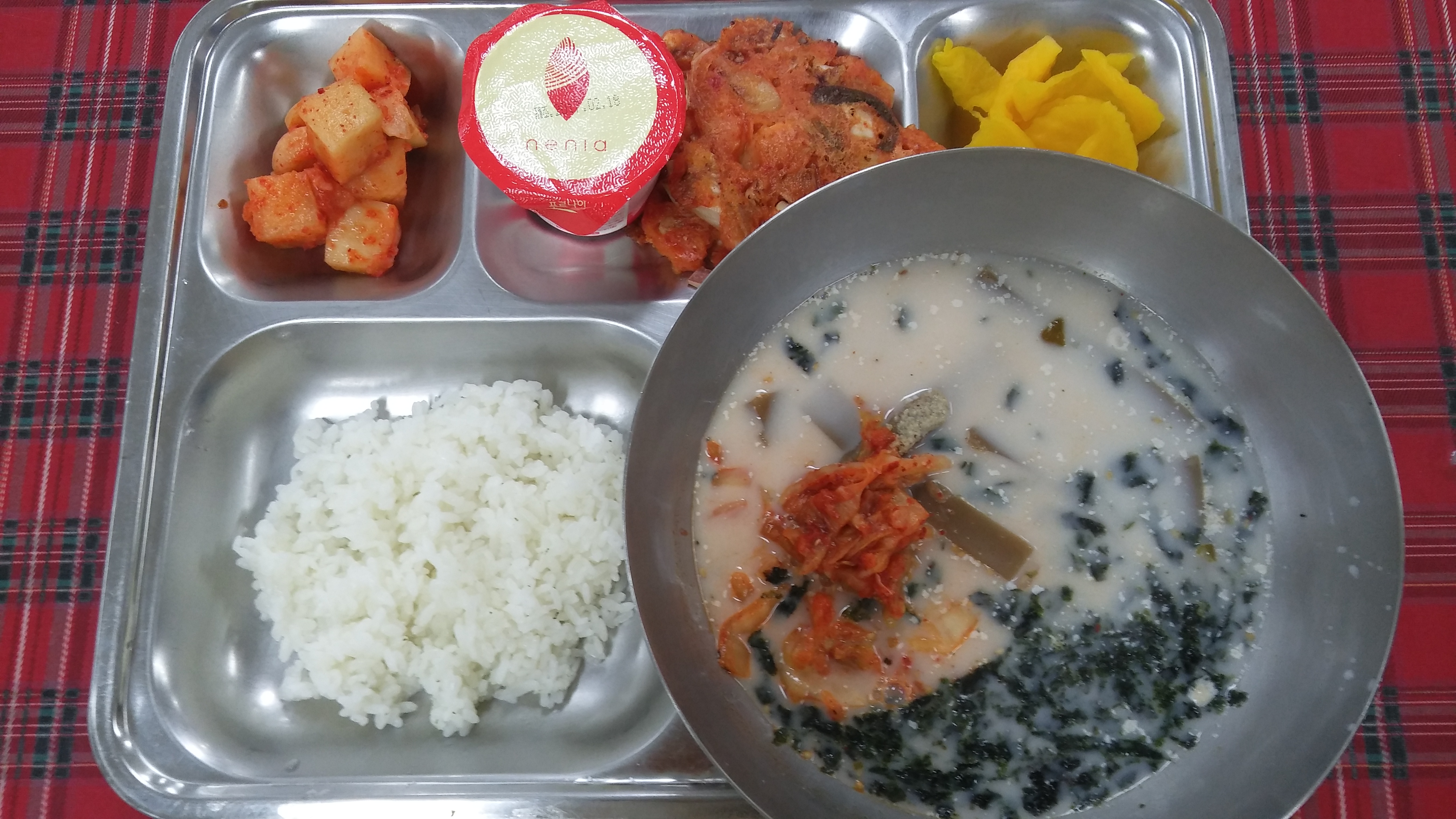 21일 중식 : 사골도토리묵밥, 오징어김치전, 꼬들단무지, 깍두기, 바닐라아이스크림