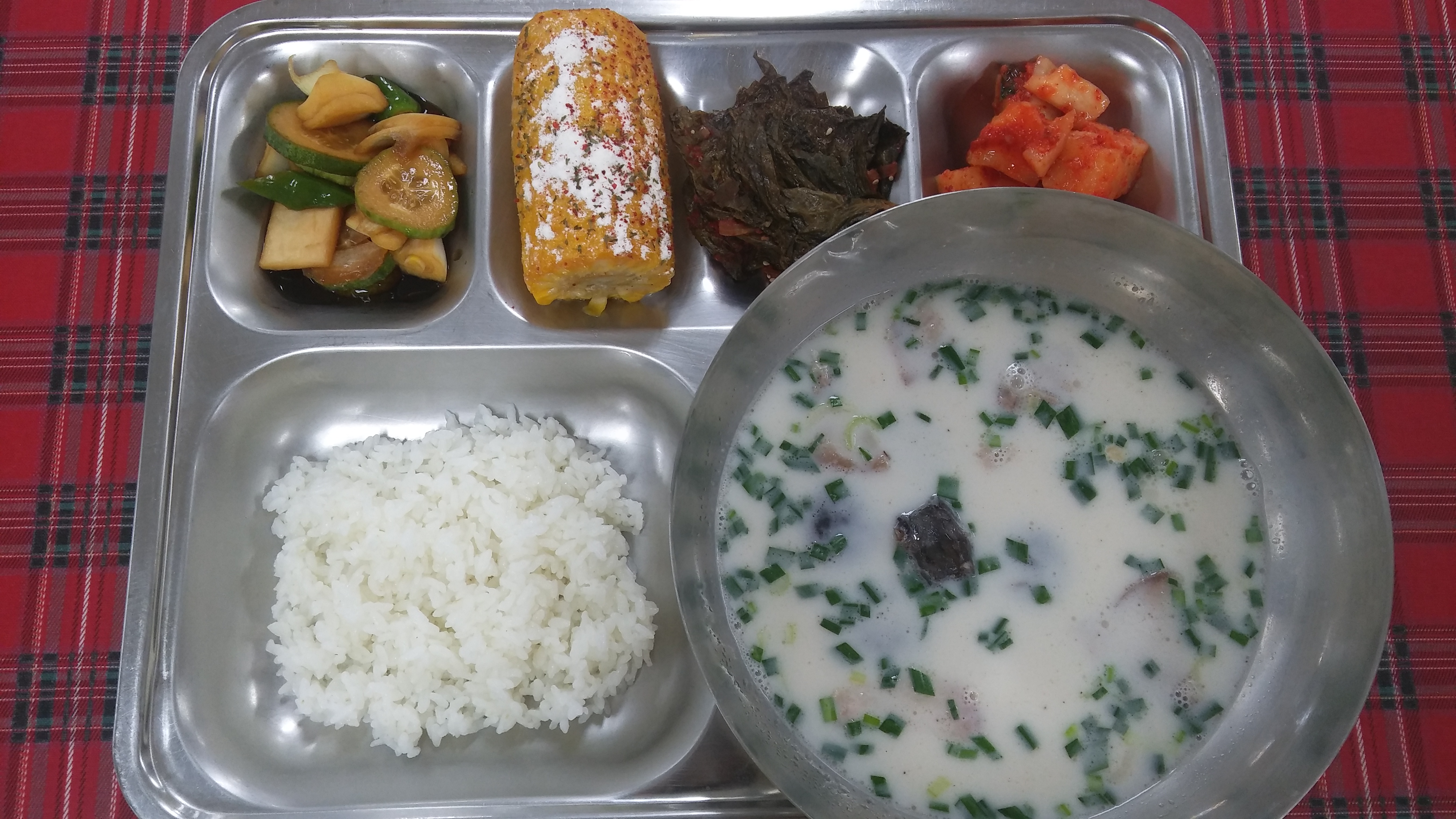 24일 중식 : 순대국밥, 깻잎찜, 야채간장절임, 깍두기, 마약옥수수