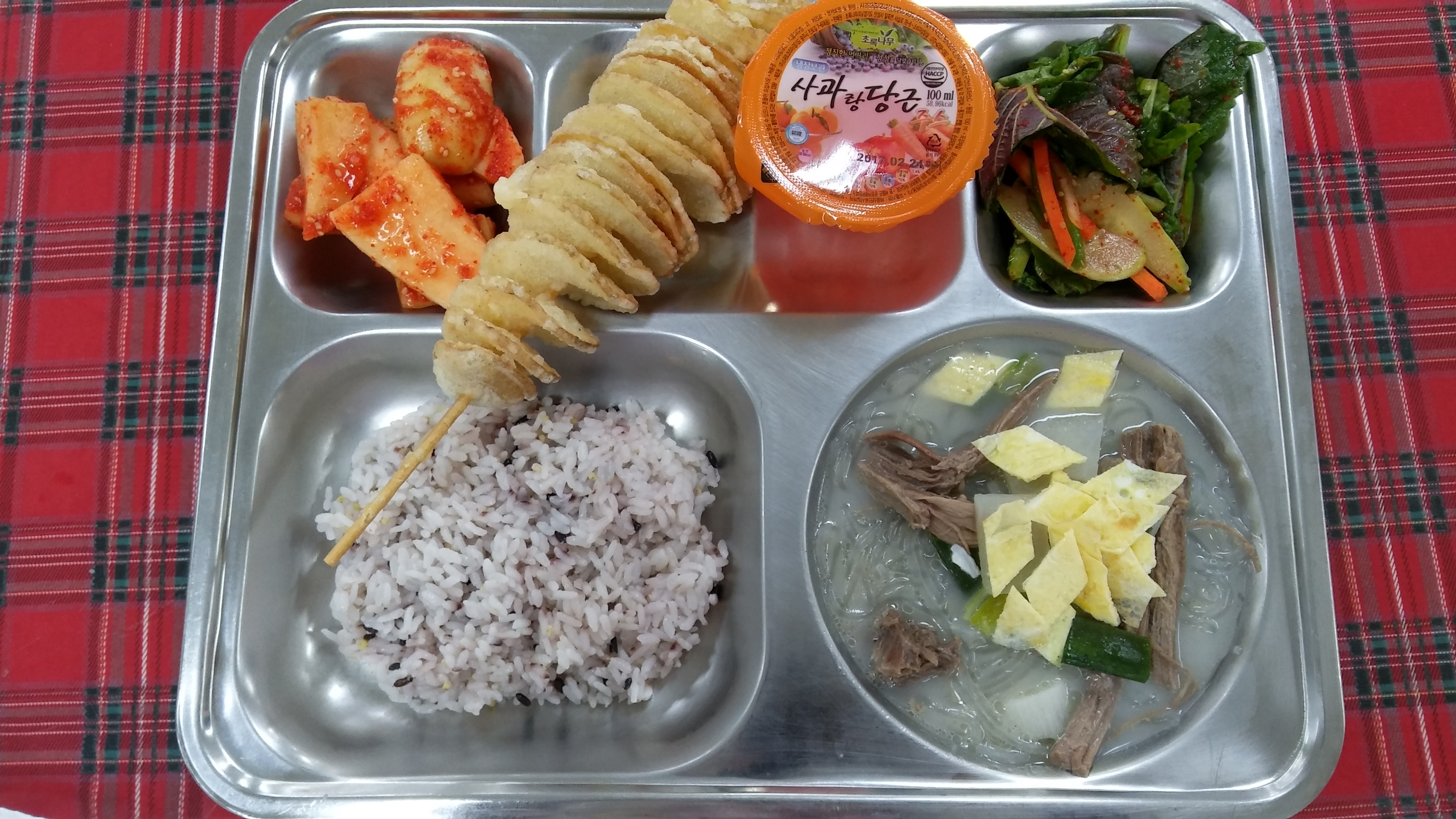 28일 중식 : 기장흑미밥, 설렁탕/당면사리, 상추겉절이, 깍두기, 회오리감자, 캐플쥬스