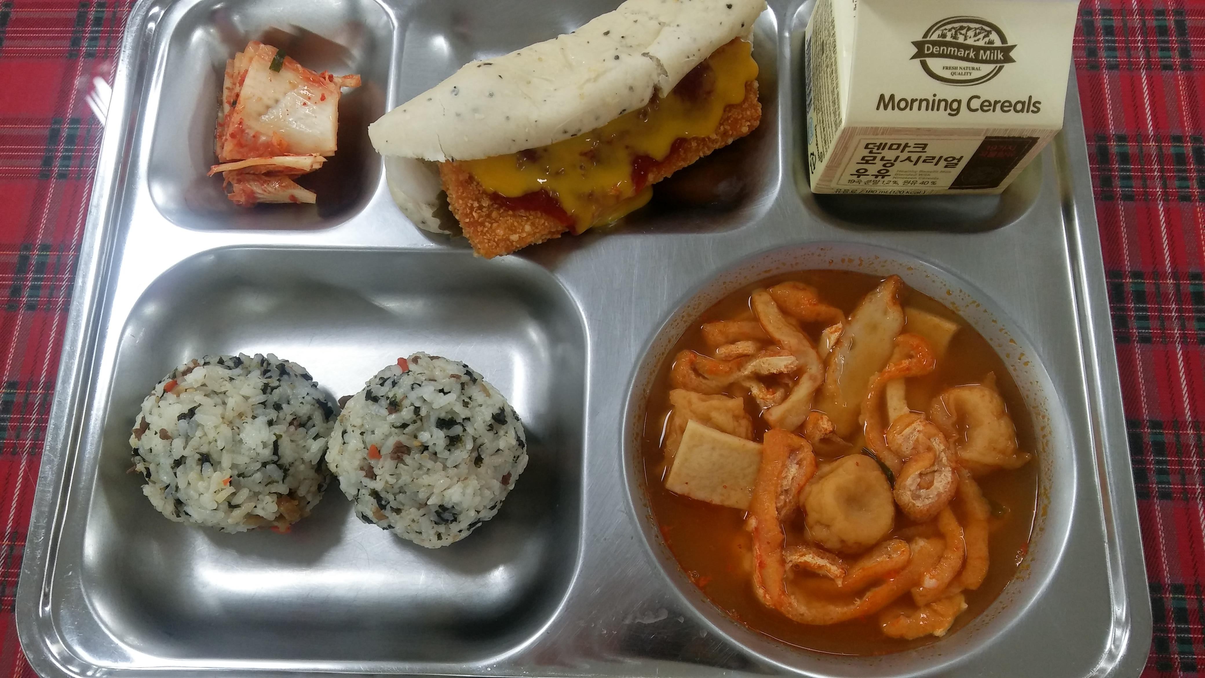 10월 5일 : 소고기주먹밥, 유부국, 배추김치, 치킨강정샌드, 시리얼우유