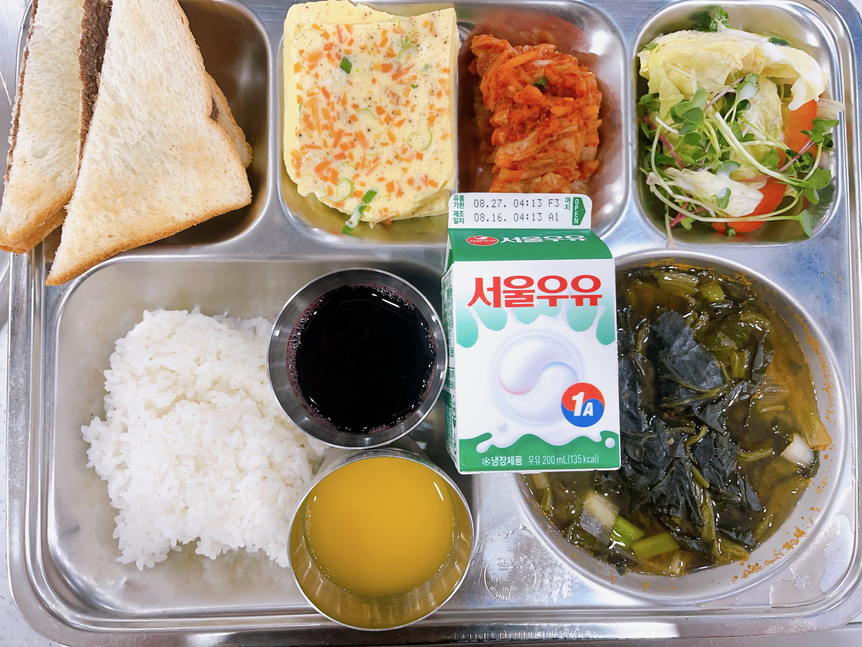 초코잼토스트/우유/아침주스(1.2.5.6.13.)