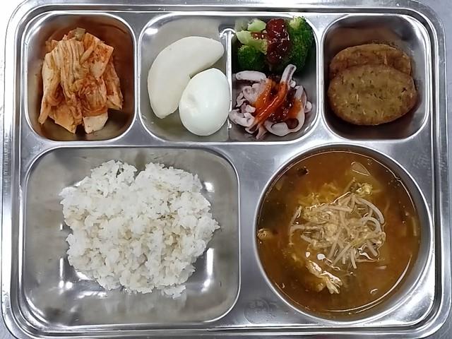 중식: 발아현미밥, 닭개장, 오징어브로콜리숙회, 녹두빈대떡, 배추김치, 친환경배