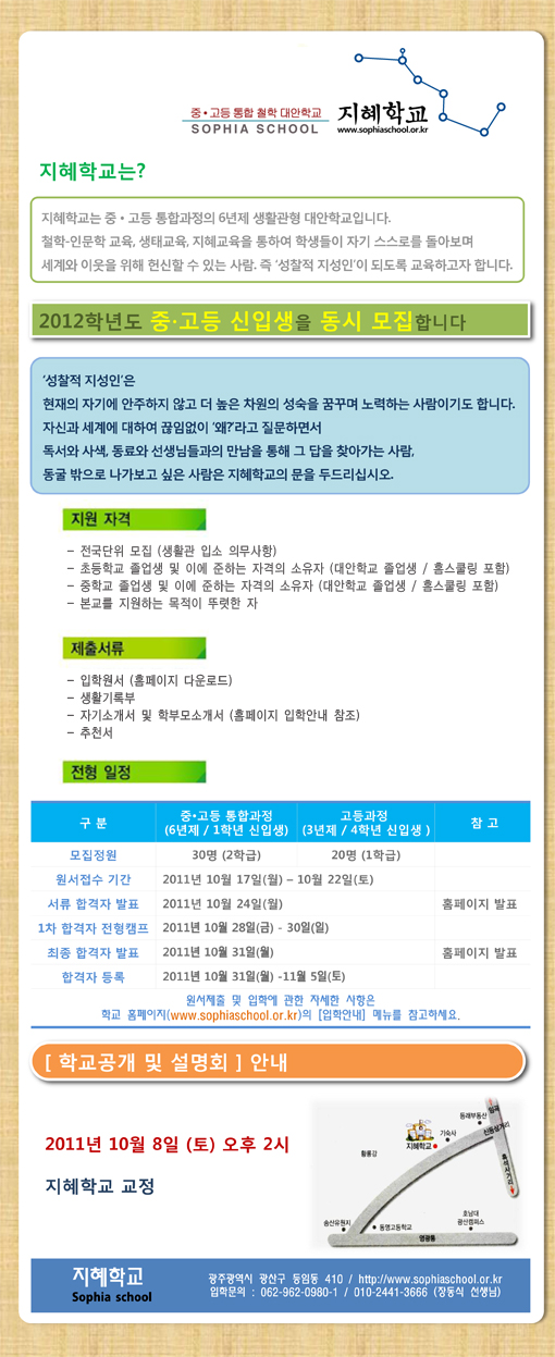 <지혜학교> 2012학년도 신입생 모집 및 학교설명회
