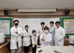 ‘라바’는 2, 3학년으로 구성된 과학동아리입니다.오늘 동아리 시간에 3학년 오유신을 중심으로 2학년 최다빈, 김진한, 구현빈은 과학실에서 화학정원 만들기 실험을 실시했습니다.먼저 실험에 앞서 실험 개요와 안전교육을 실시했고, 실험과정에서 중요하게 점검할 부분을 토의한 후 실험을 실시했습니다.실험원리로는 금속이 음이온과 반응하여 염을 형성한 것을 금속염이라 하는데 실험에서 흰컵의 물에 금속염의 종류인 황산구리나, 염화코발트 등을 떨어트리면 그냥 녹지만 물유리가 들어있는 시약병에 떨어트리면, 물유리 안쪽에 있는 물에서는 마치 나무가 자라는 것과 같은 현상을 관찰할 수 있습니다. 금속염이 물유리와 반응해 순간적으로 반투과막을 만들게 됩니다. 이 반투과막을 통해 농도가 높은 금속염 안쪽으로 물이 들어오게 되고 물의 압력으로 반투막이 터지게 되는 반응을 반복하게 되는데 이 현상이 마치 나무가 자라는 듯한 현상처럼 보이게 됩니다. * 여러 가지 금속염의 색깔(1) 염화 철 (ferric chloride) : 고동색(2) 질산 니켈 (nickel nitrate) : 녹색(3) 염화 구리 (copper chloride) : 밝은 녹색(4) 염화 코발트 (cobalt chloride) : 진한 청색(5) 질산 망간 (manganese nitrate) : 흰색(6) 질산 코발트 (cobalt nitrate) : 진한 청색