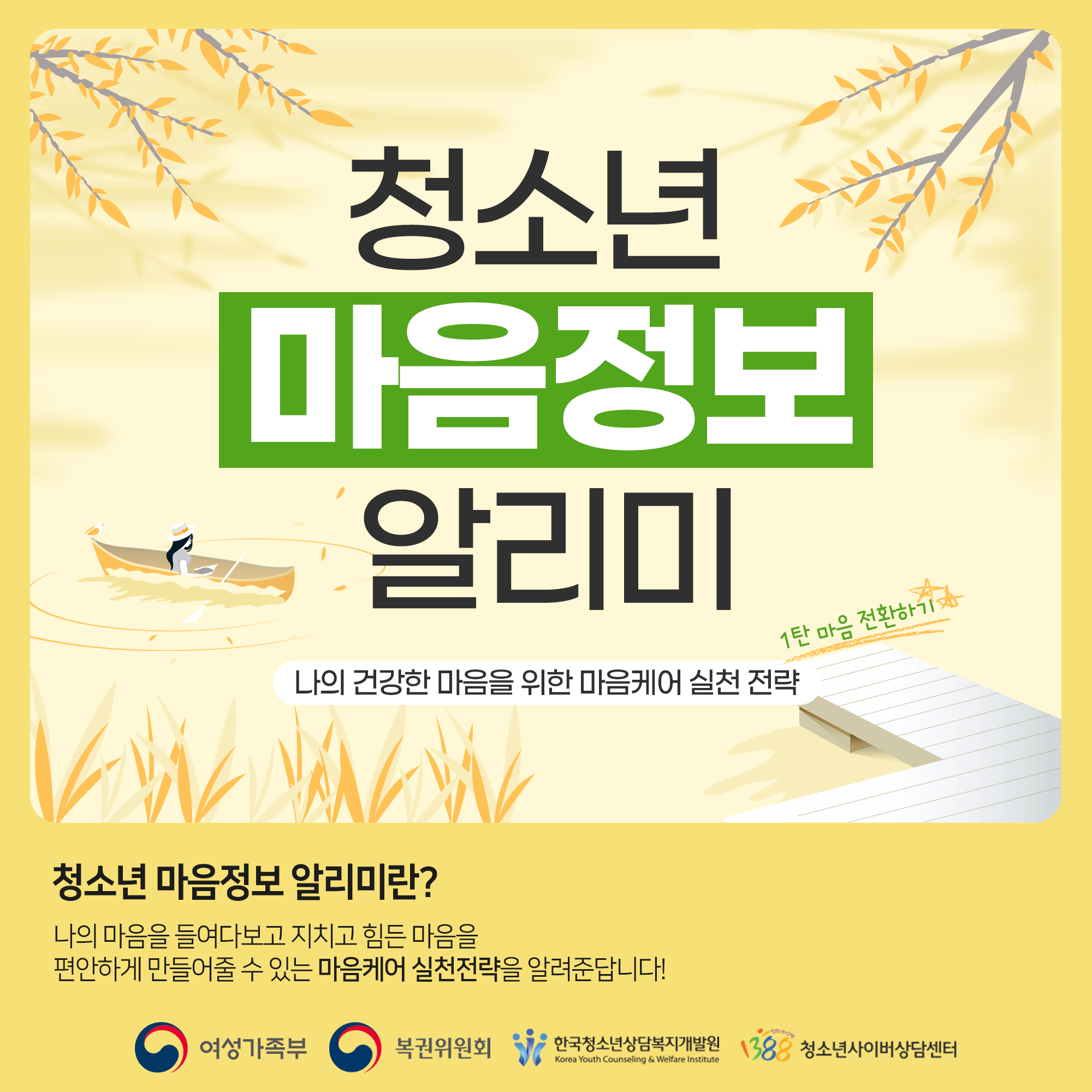 (청소년 마음 정보 알리미) 나의 건강한 마음을 위한 마음케어 실천전략
