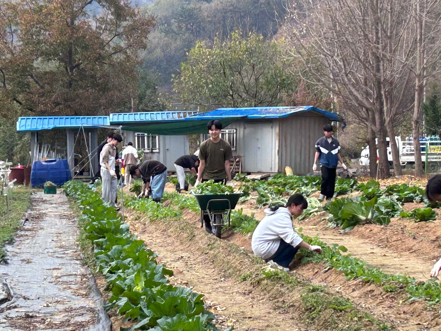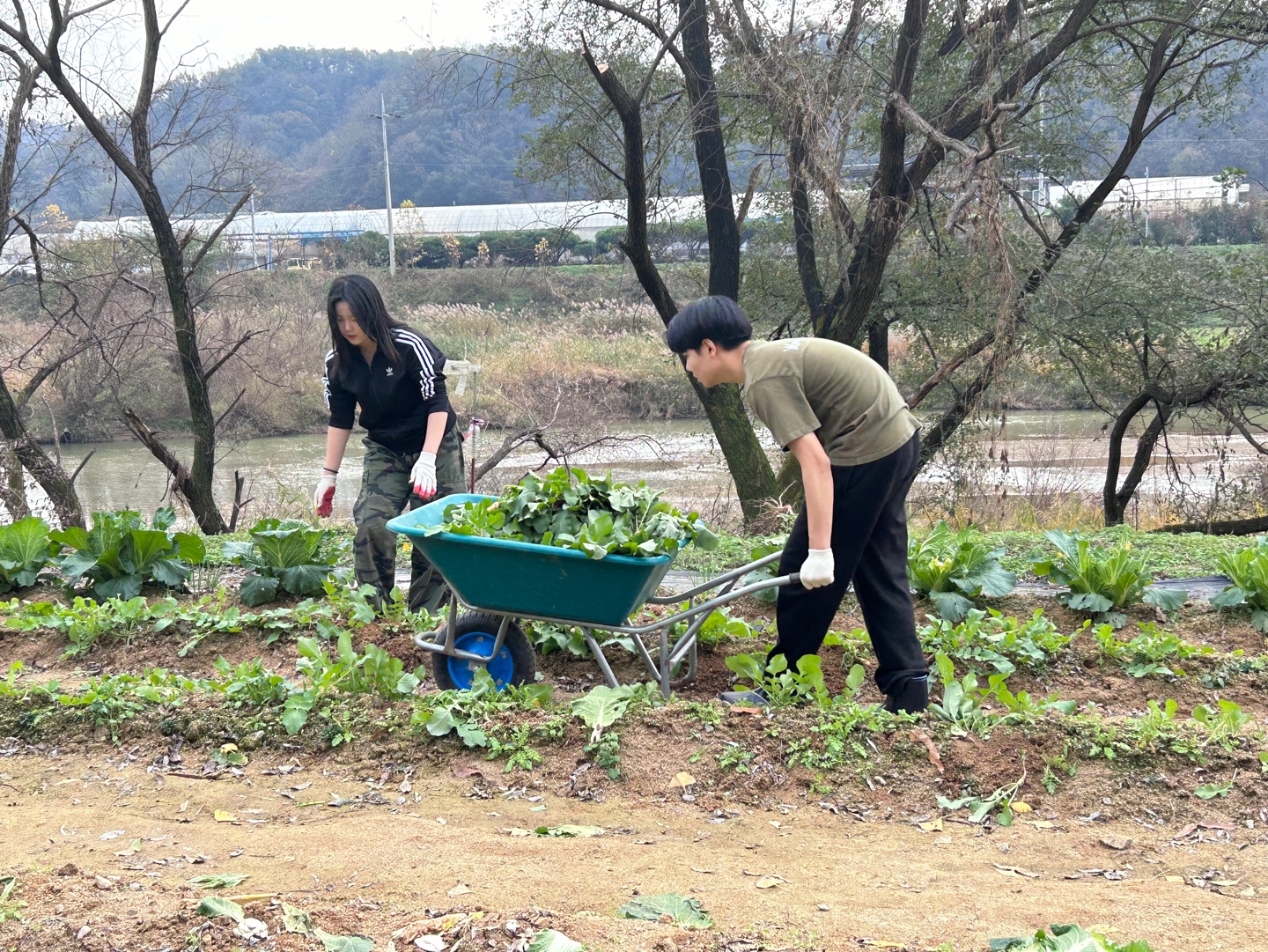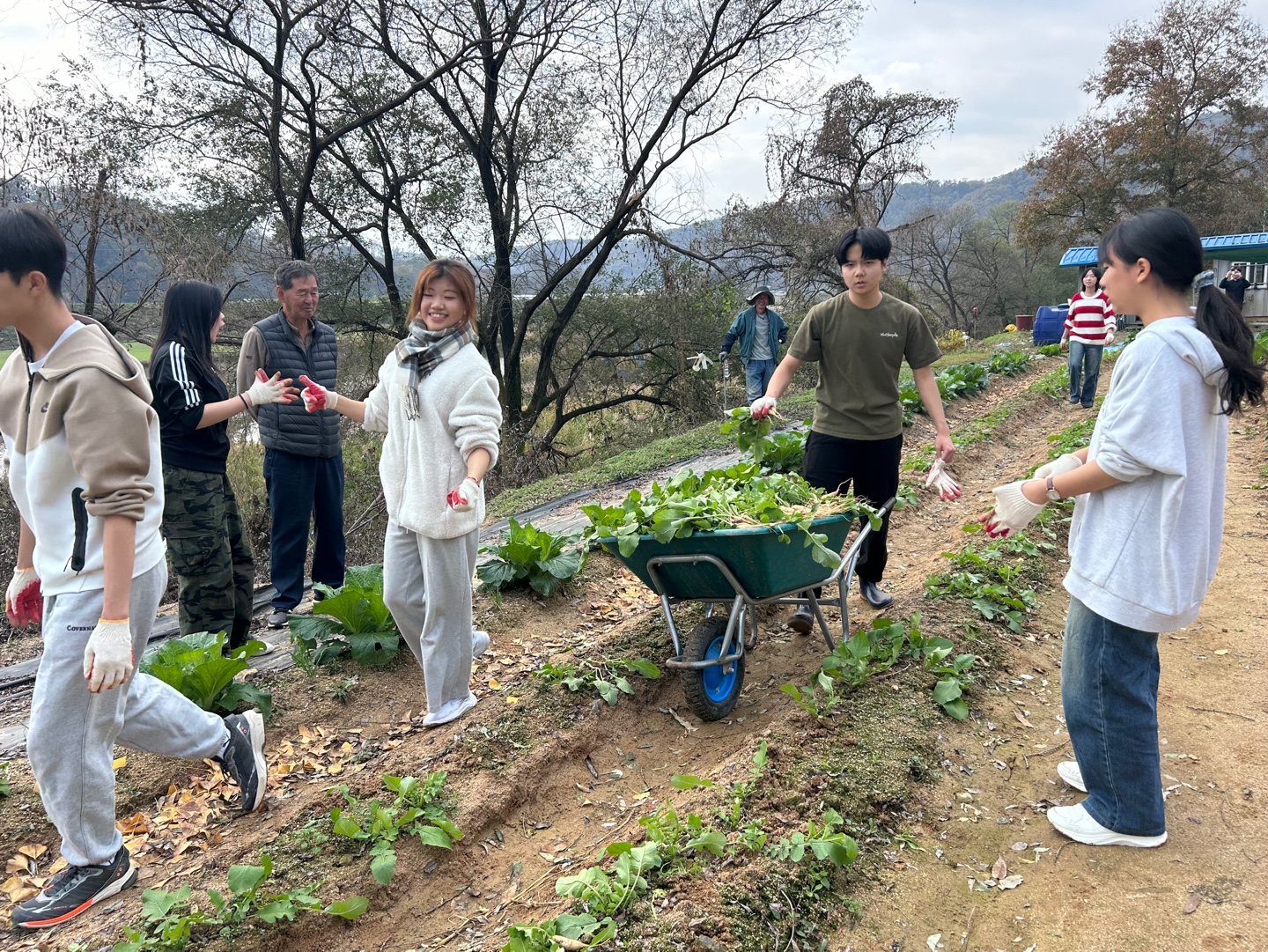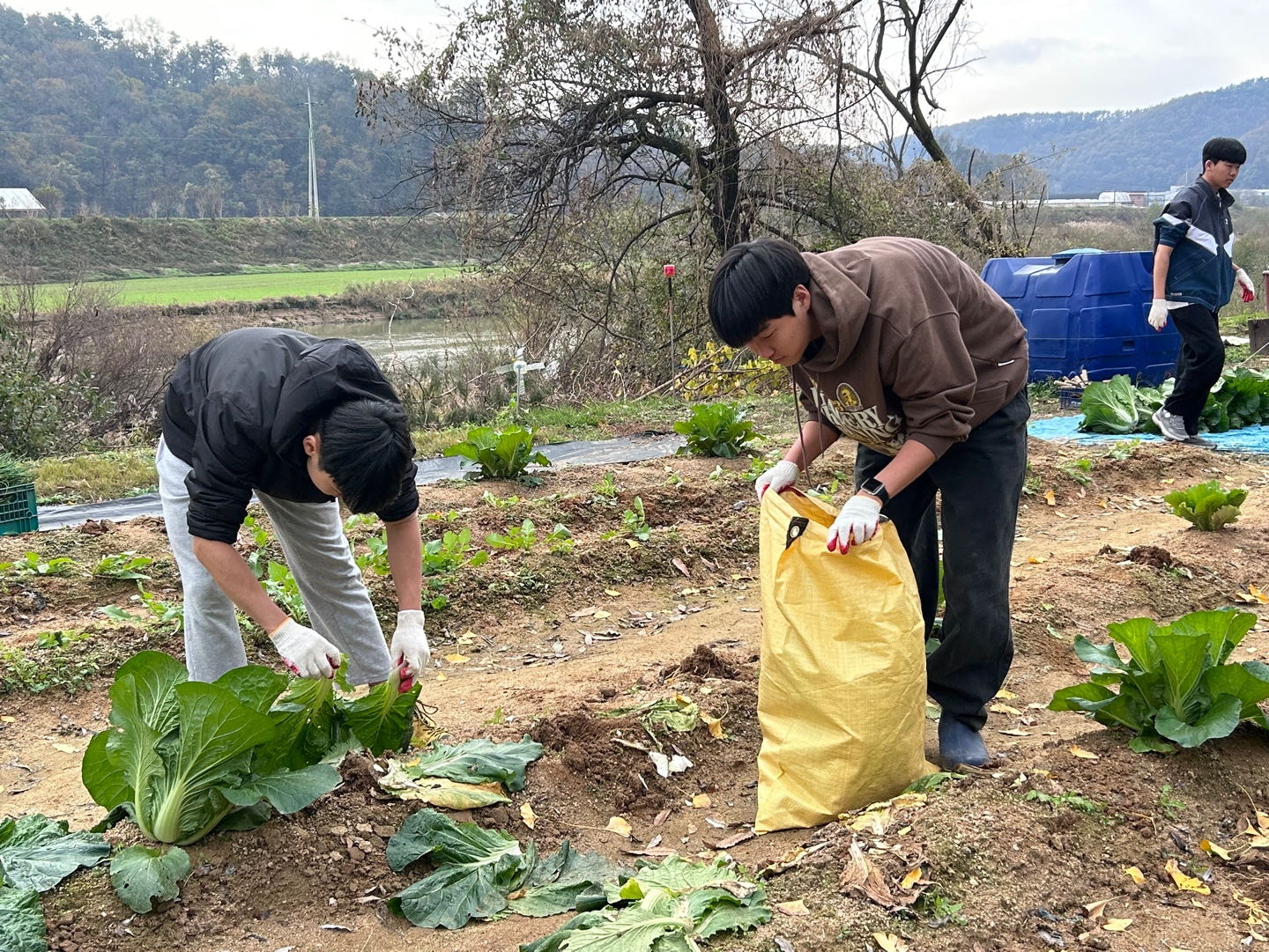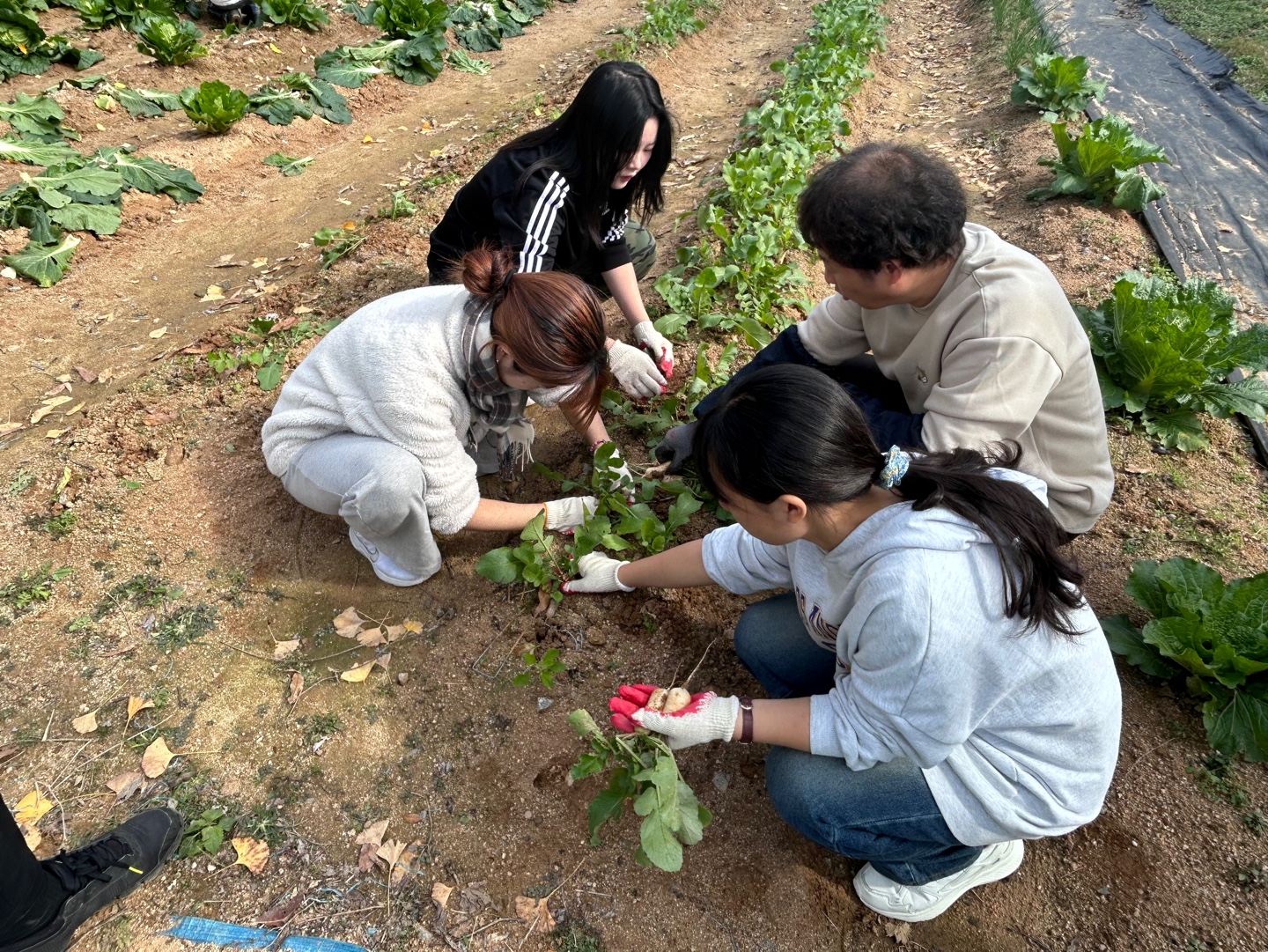 아이들이 2학기 동안 정성스럽게 키운 배추, 파, 무우를 청주 성심 노인 요양원에 기부하였습니다.
