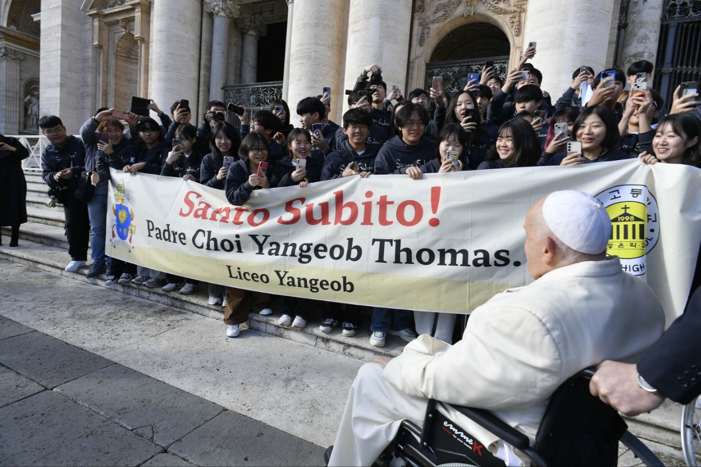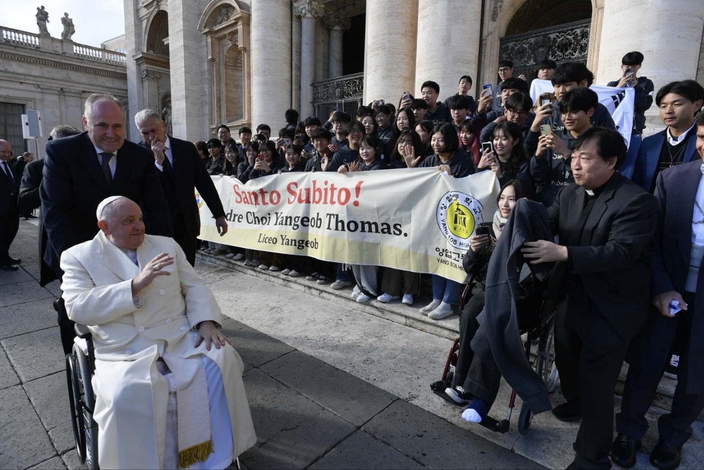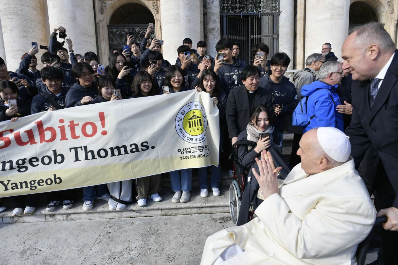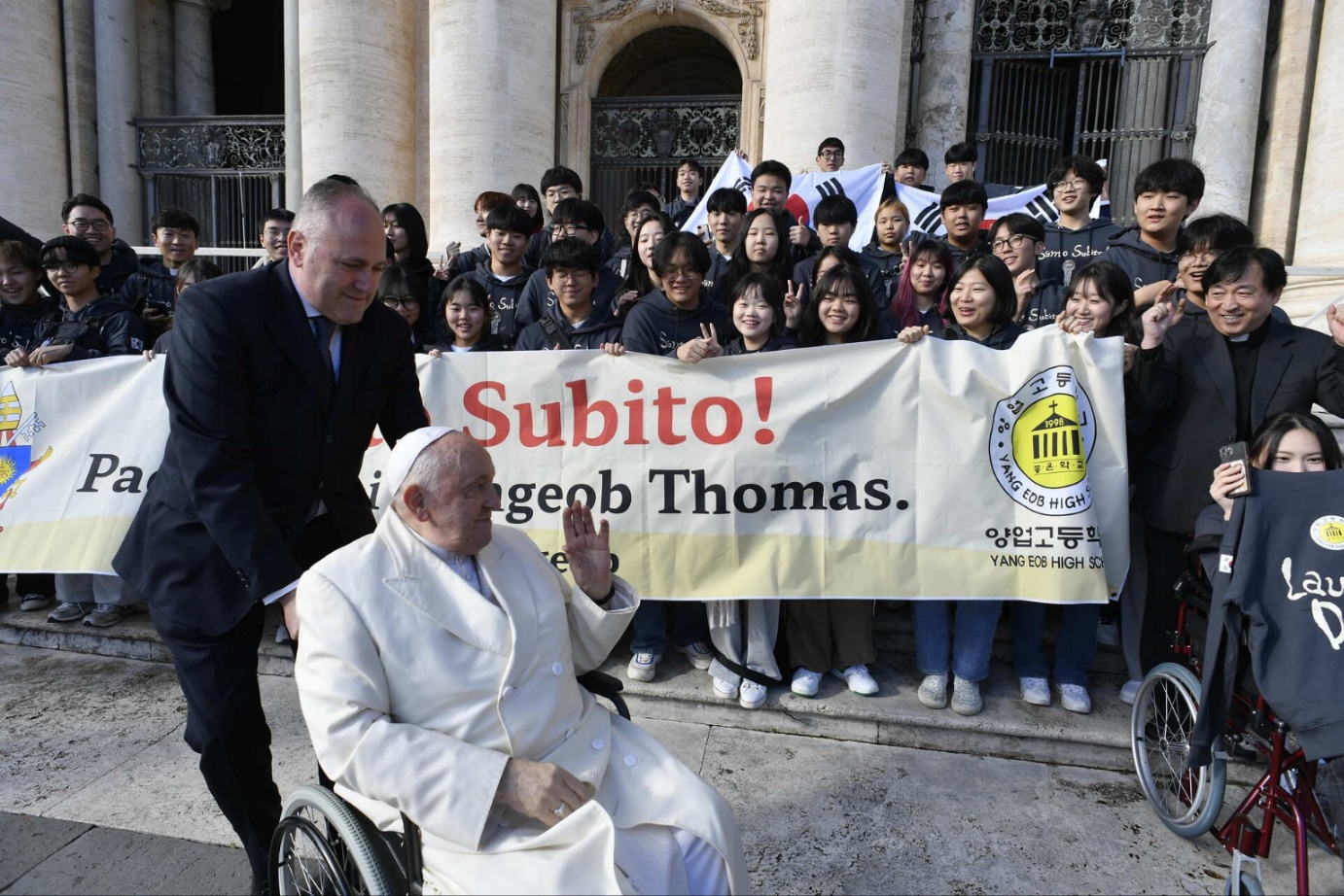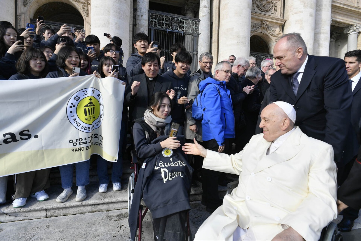 프란치스코 교황님을 직접 알현하는 모습입니다.