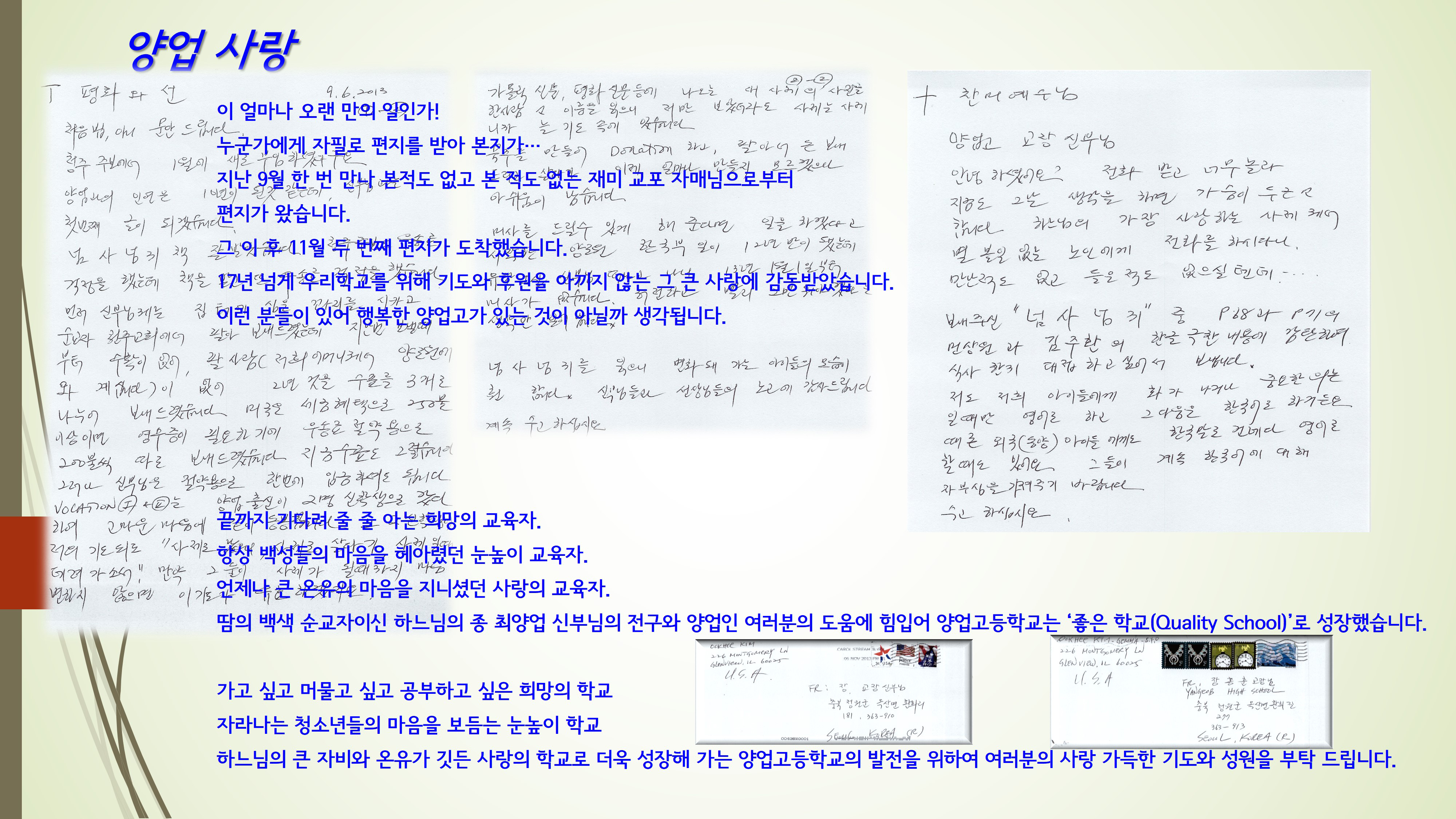 기도해 주시고 후원해 주신 재미 교포 자매님의 사랑에 대해