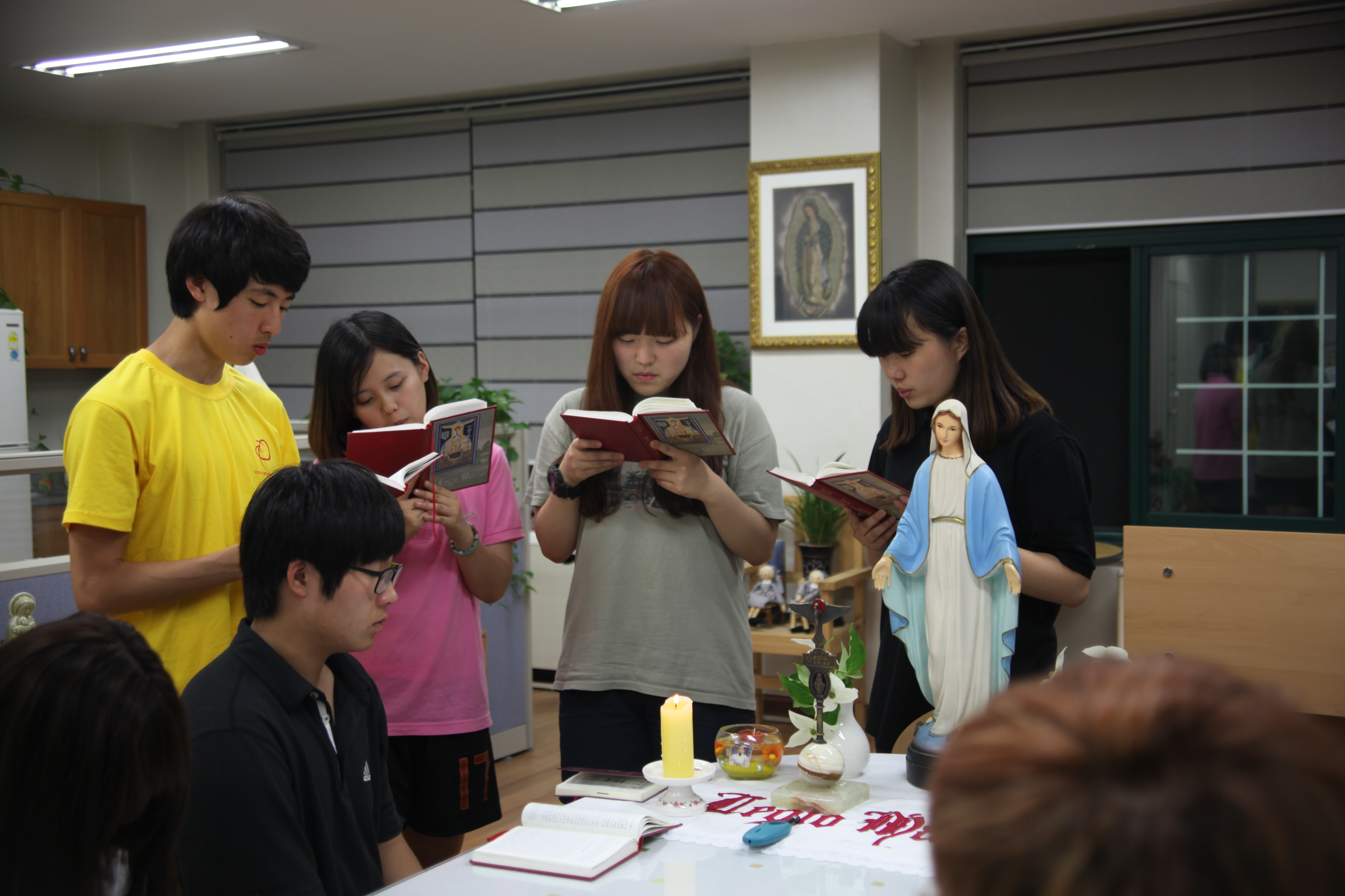 학생들은 아직 성모님에 대한 신심이 없지만 매주 월요일 저녁 8시면 함께 모여서 정해진 교본에 따라 레지오 주 회합을 하는데 3학년 미진이는 바쁜가운데 열심히 참석을 해서 좋은 모범을 보여주고, 1학년 서진이와 재광이도 미진이와 함께 거의 매일 미사를 참례하고 있지요.