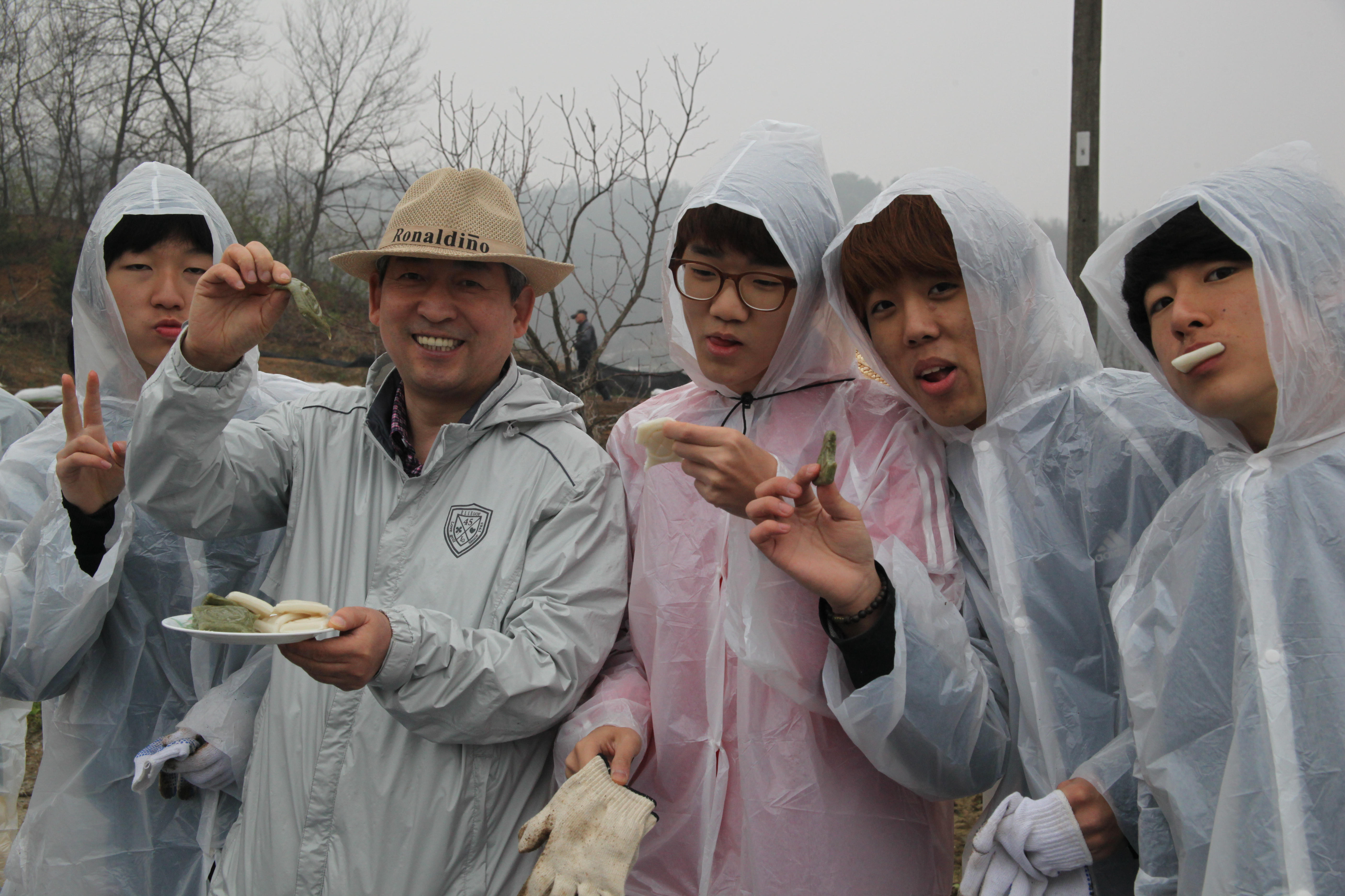 날씨는 춥고 비까지 으스스 내리는 고된 시간에 신부님께서 농주 한컵과 떡을 나누어 주셨습니다.