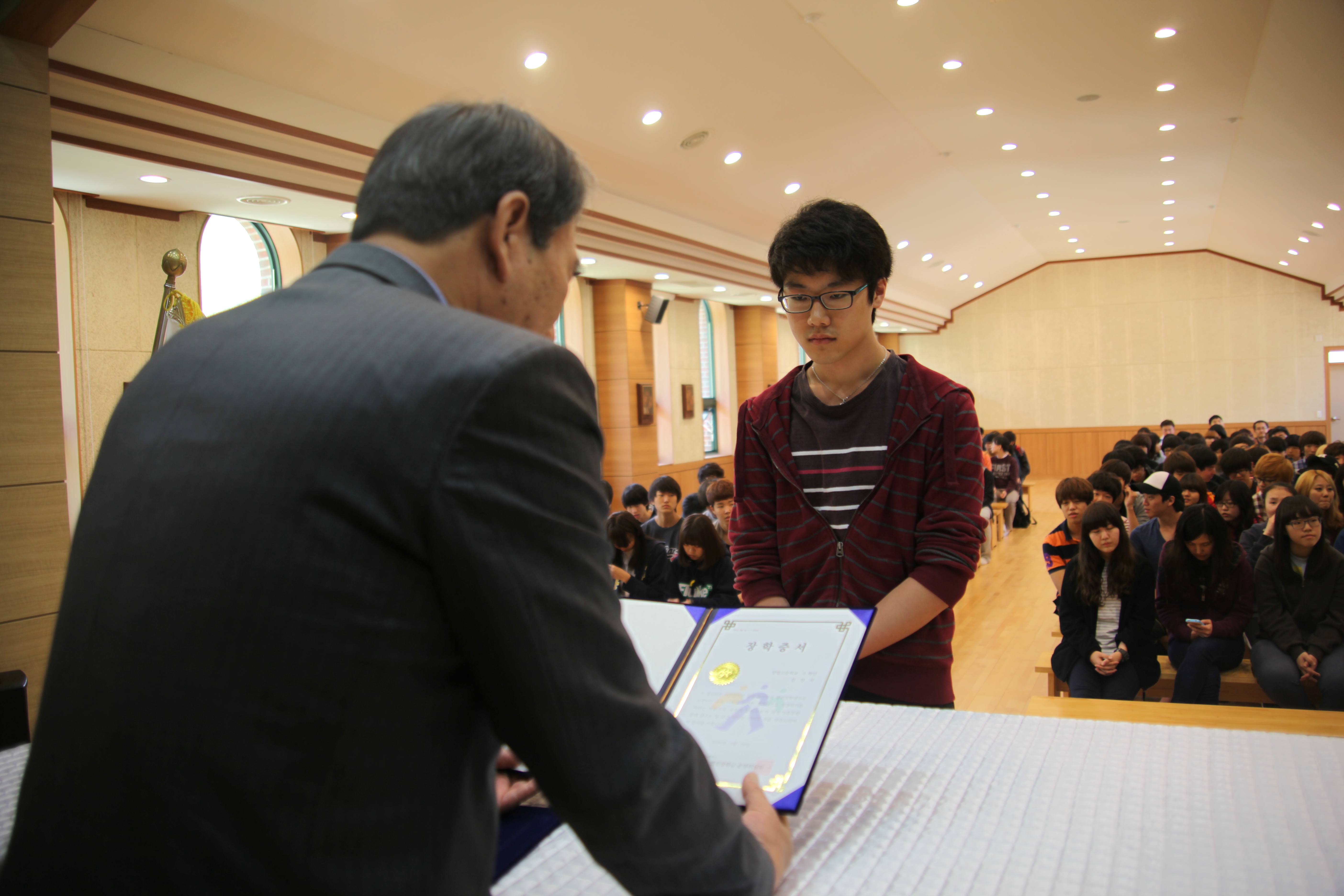 3학년 김민석 학생이 삼성 동아일보 열린 장학금을 수여받았습니다.