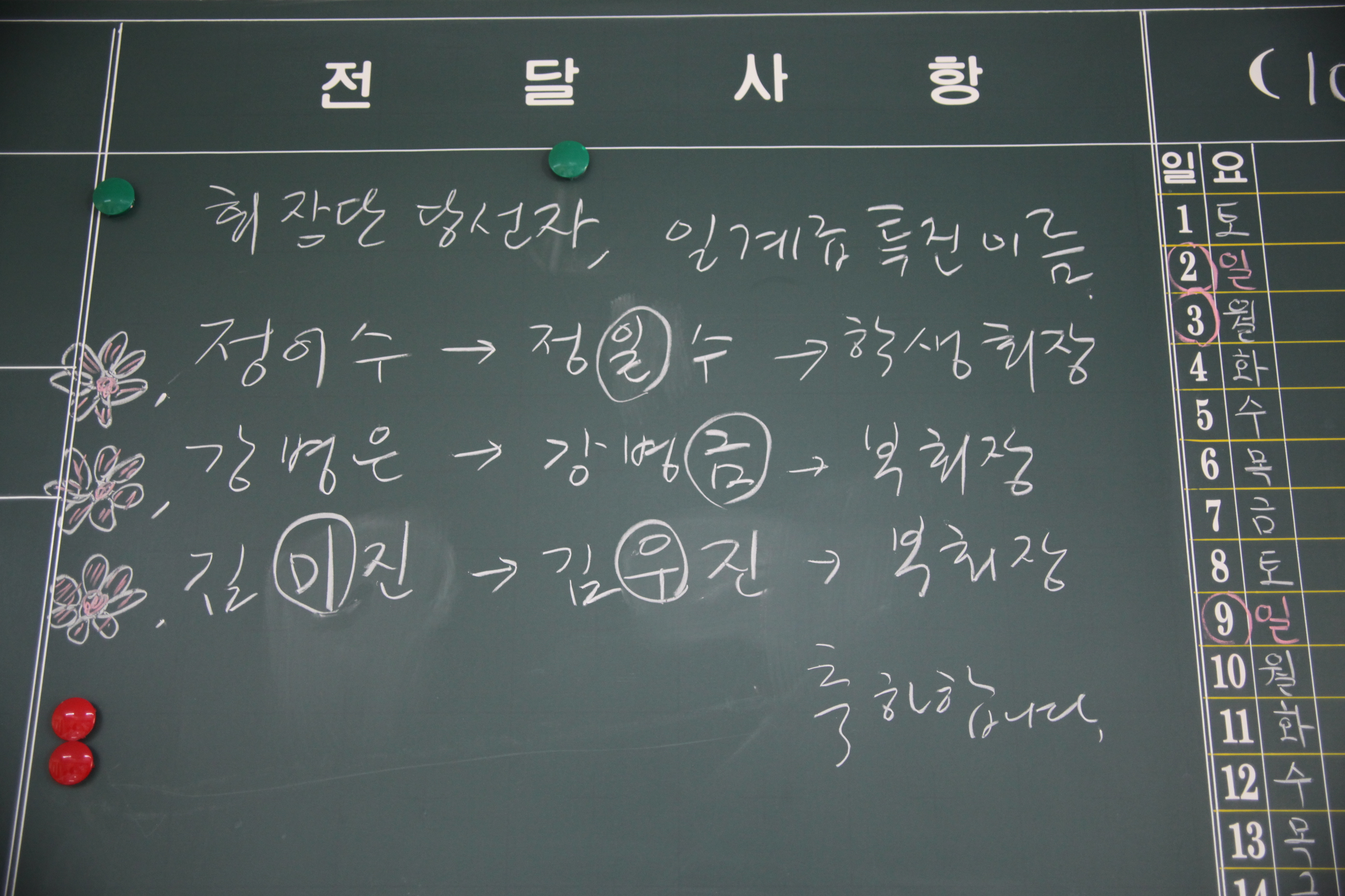 오늘 교육지원실의 칠판에 적힌 교장신부님 메세지
