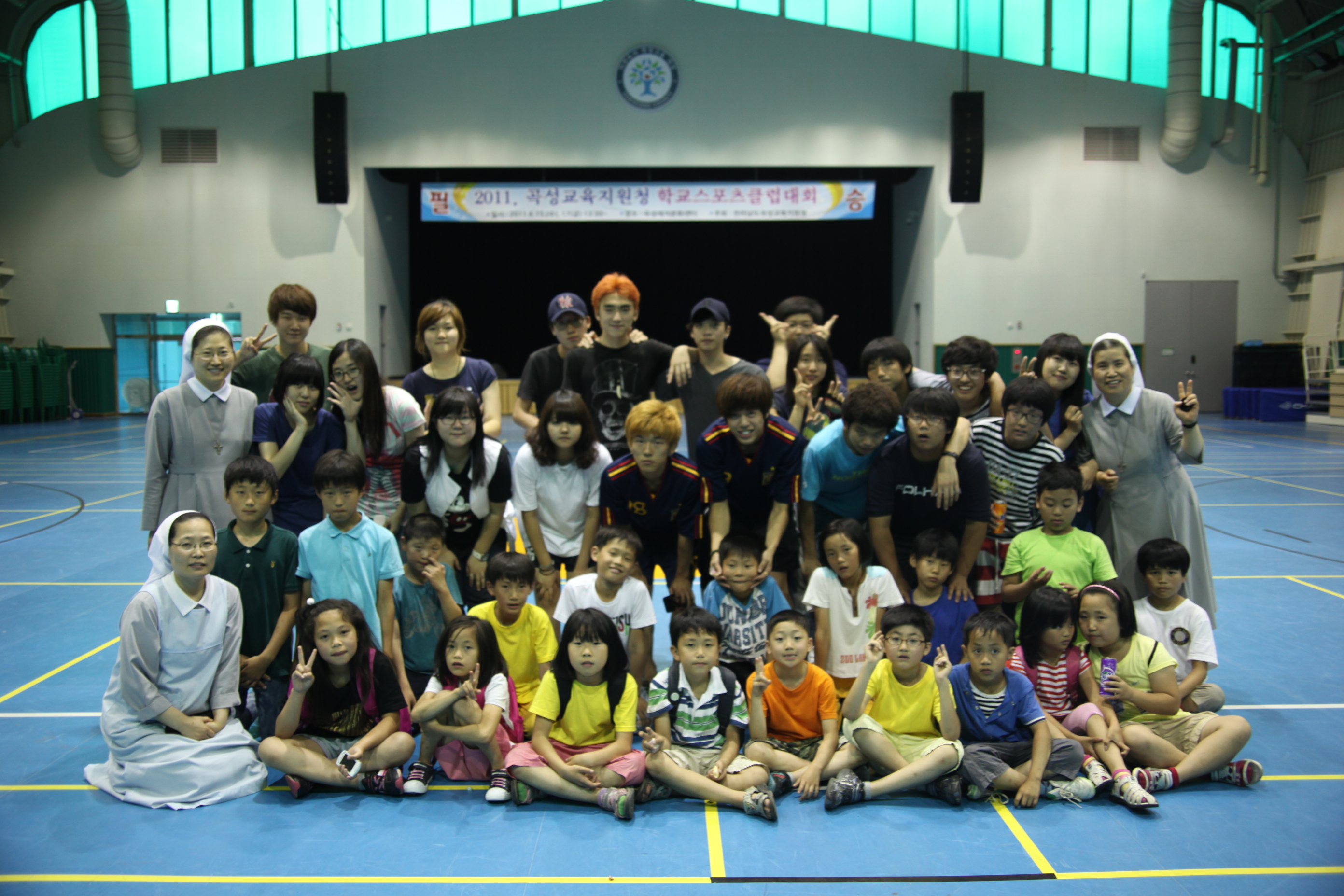 20여명의 아동들과 함께 물총 놀이와 실내 체육관을 빌려서 소 체육대회를 개최하였는데 2학년 남학생이 주최가 되어 아동들과 매우 재미있게 놀았지요.