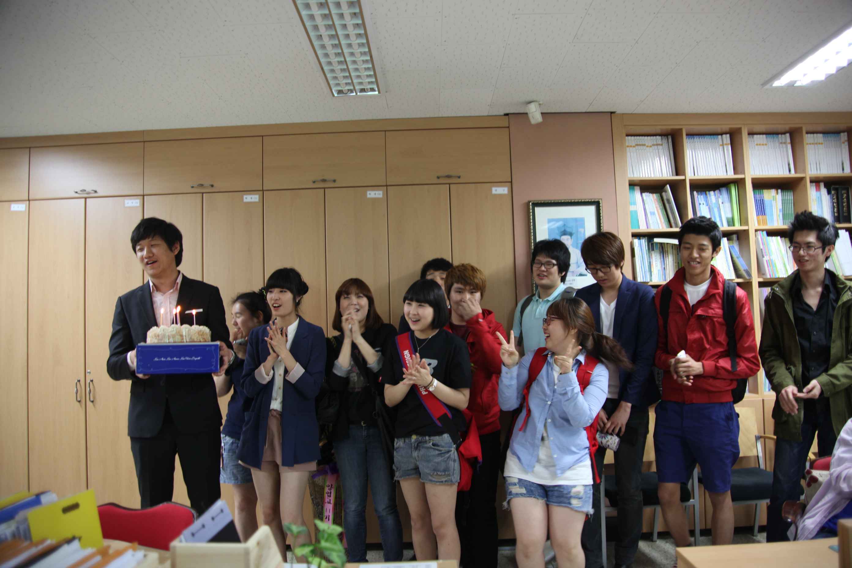 일본어 실에서 한참 동안 동창회를 진행한후에 케익에 촛물을 켜고 교육지원실에 나타났는데 매우 감동적이었지요.