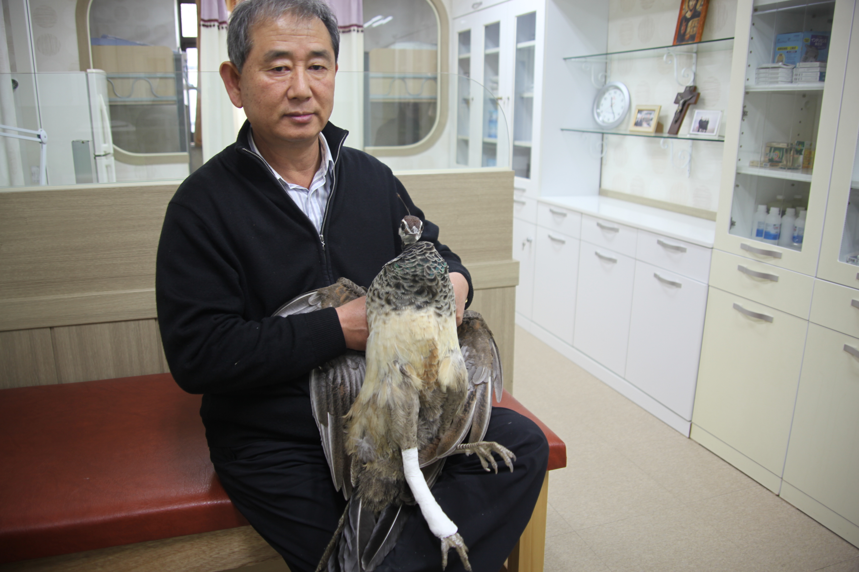 닭장에서 보건실로 잡아 데리고 와서 Cast를 해 주었습니다.