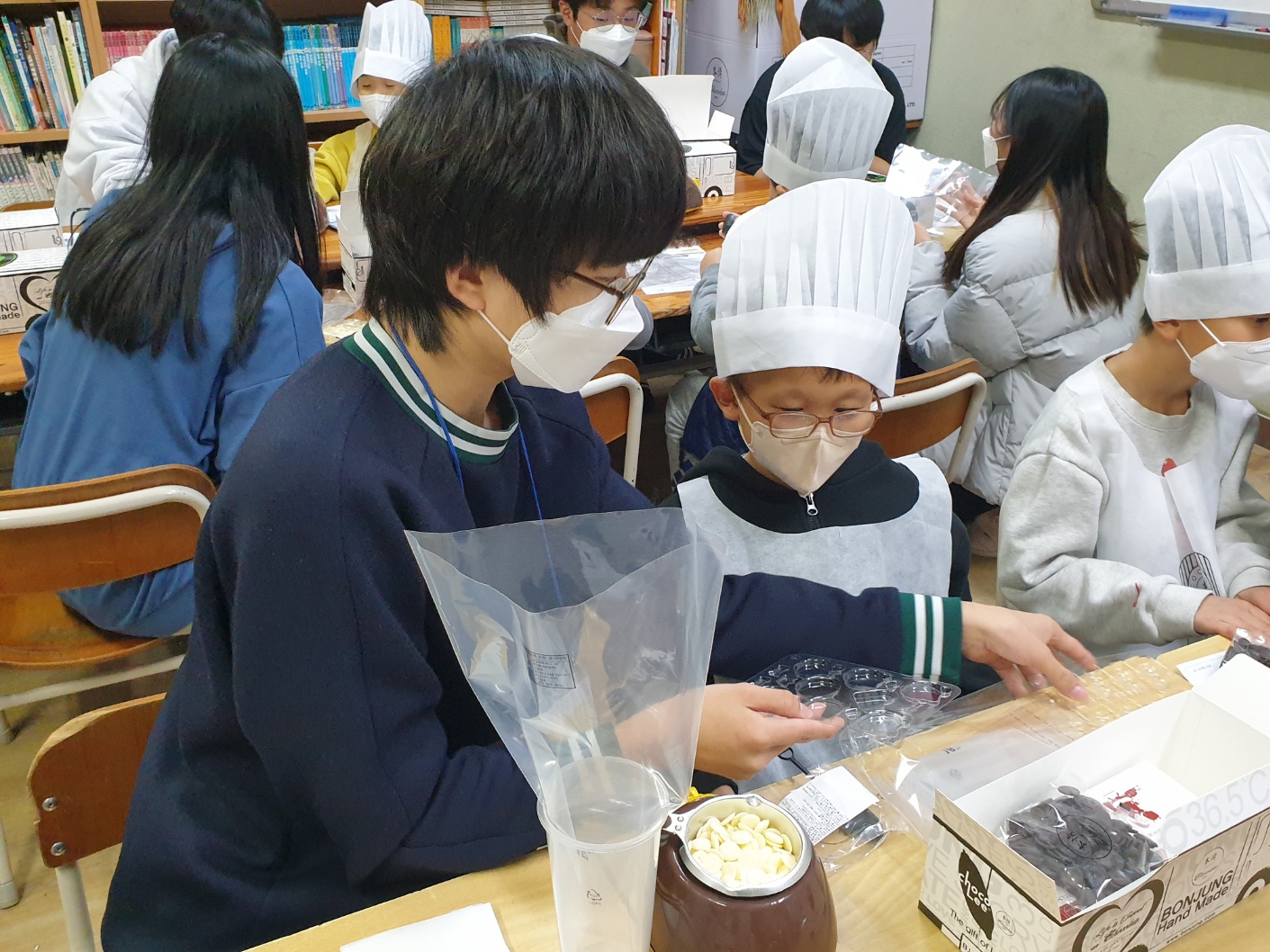 '형 언제와' 동아리 학생들이 '옥산지역아동센터' 아이들과 초콜릿 만들기 활동을 함께 하였습니다.