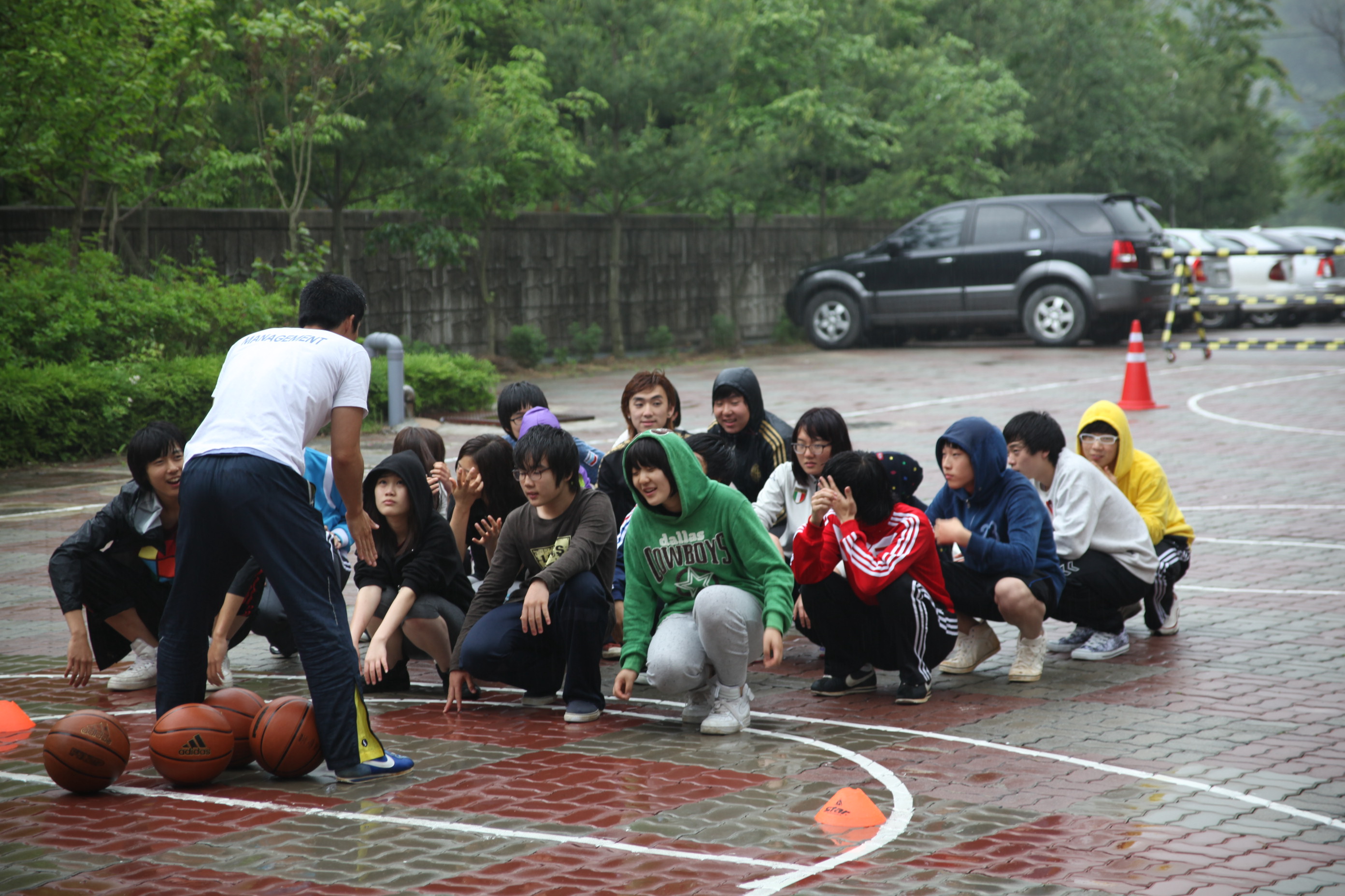 비가오는 가운데 열심히 수업에 임했던 학생과 체육과 교생 선생님들..