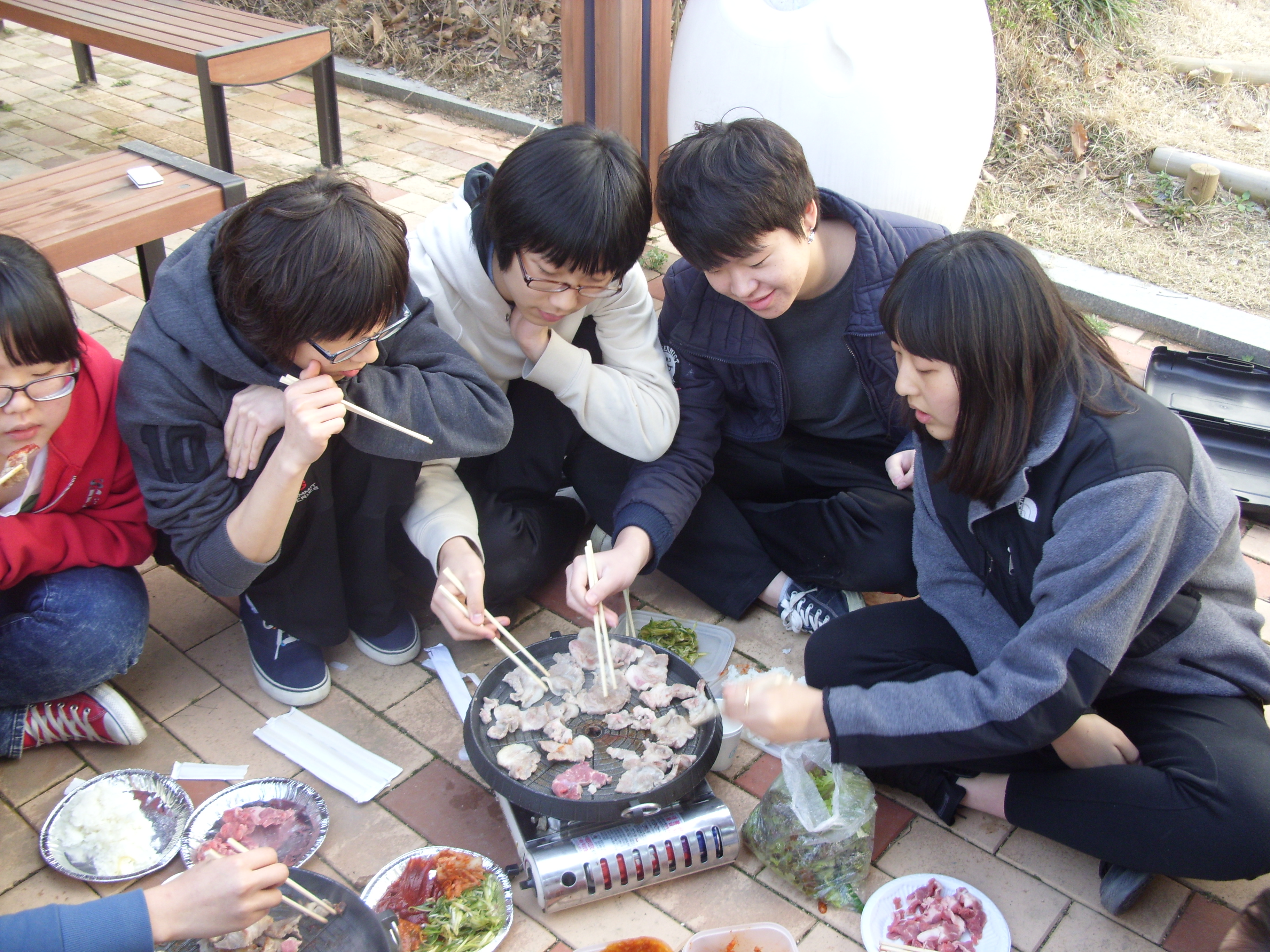 맛있는 삼겹살이 입에 들어가는 순간 아이들은 아이~ 행복해~ 라며 즐거워하였으며 추운줄도 모르고 순식간에 고기가 없어져 버렸지요.