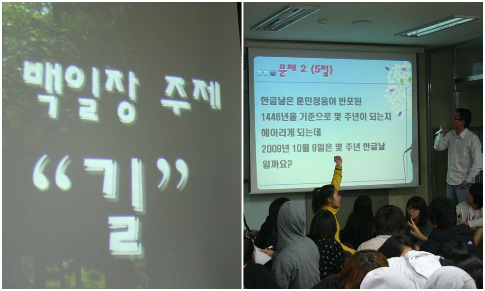 한글날 관련 반 대항 퀴즈와