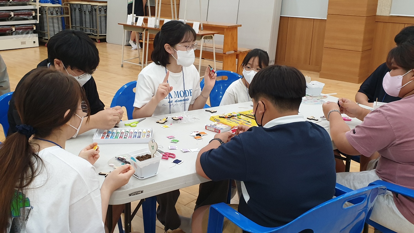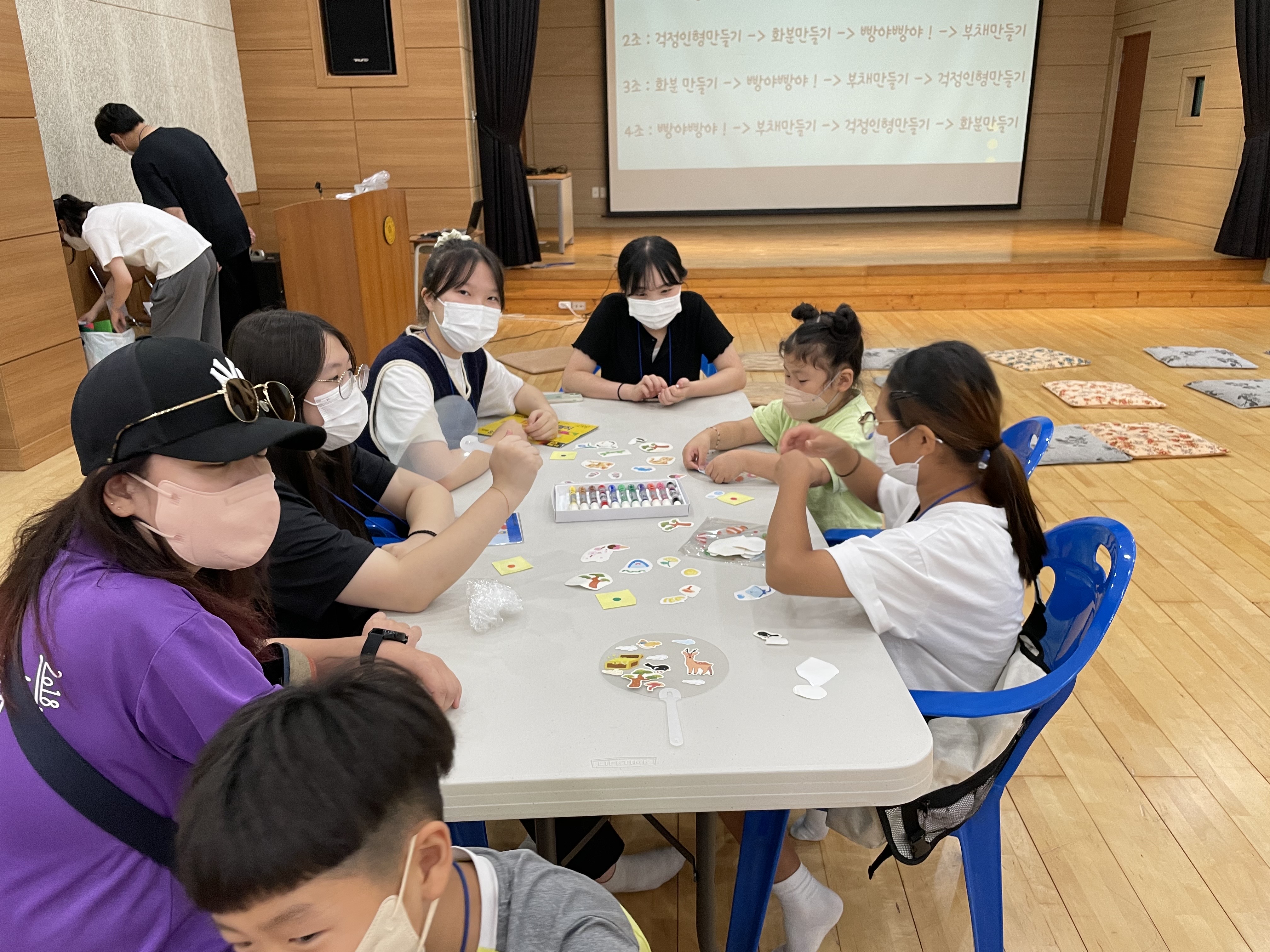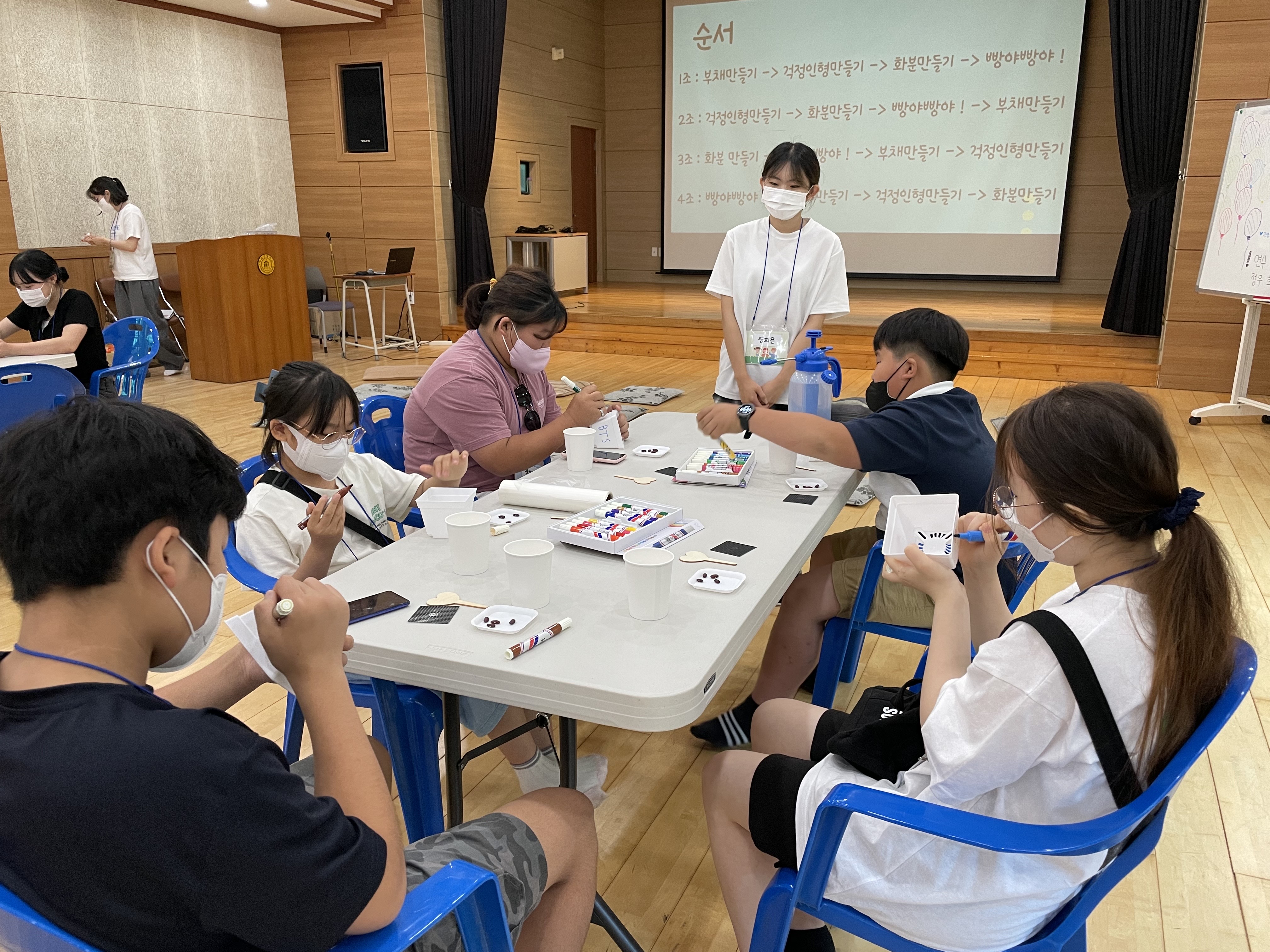 놀체인 학생들과 형 언제와 봉사 학생들은 '화분, 부채, 걱정인형 만들기', '소체육 놀이 활동', '양업고 관련 질의 응답' 시간을 함께 하며